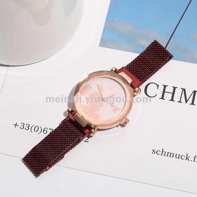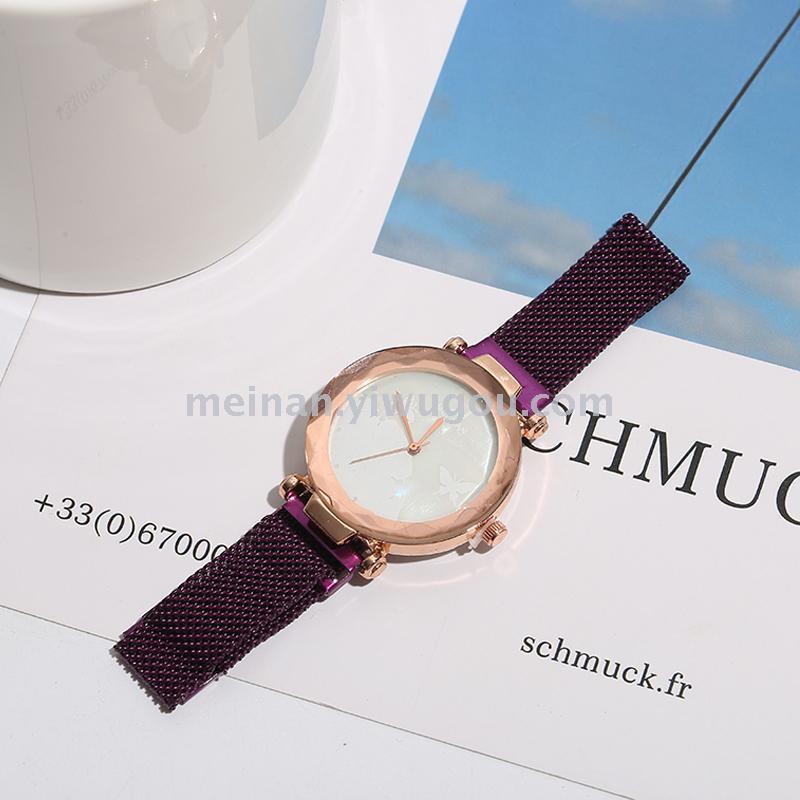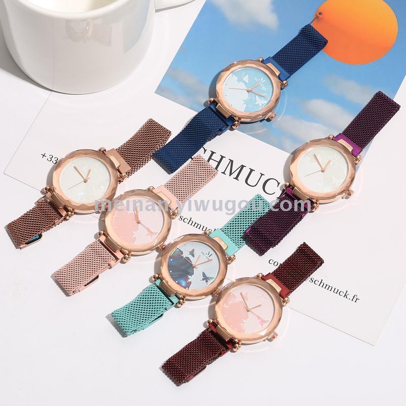 新款韩版女士磁铁扣 蝴蝶款水晶面米兰带网红手表