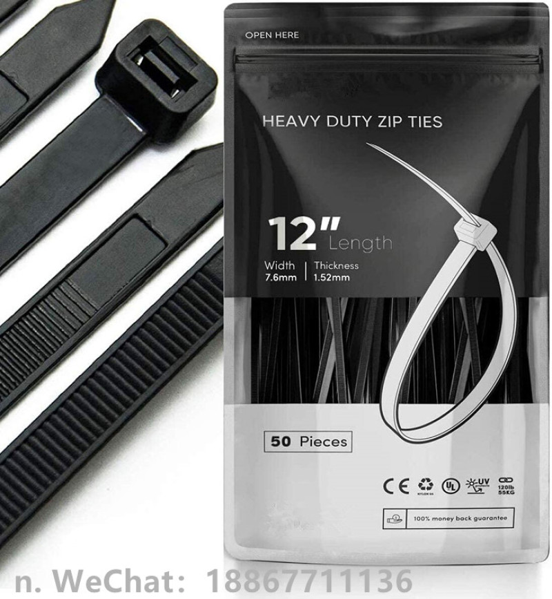自然锁定电缆扎带 12 英寸。 各种尼龙绳带,黑色 UV 黑色 15*300