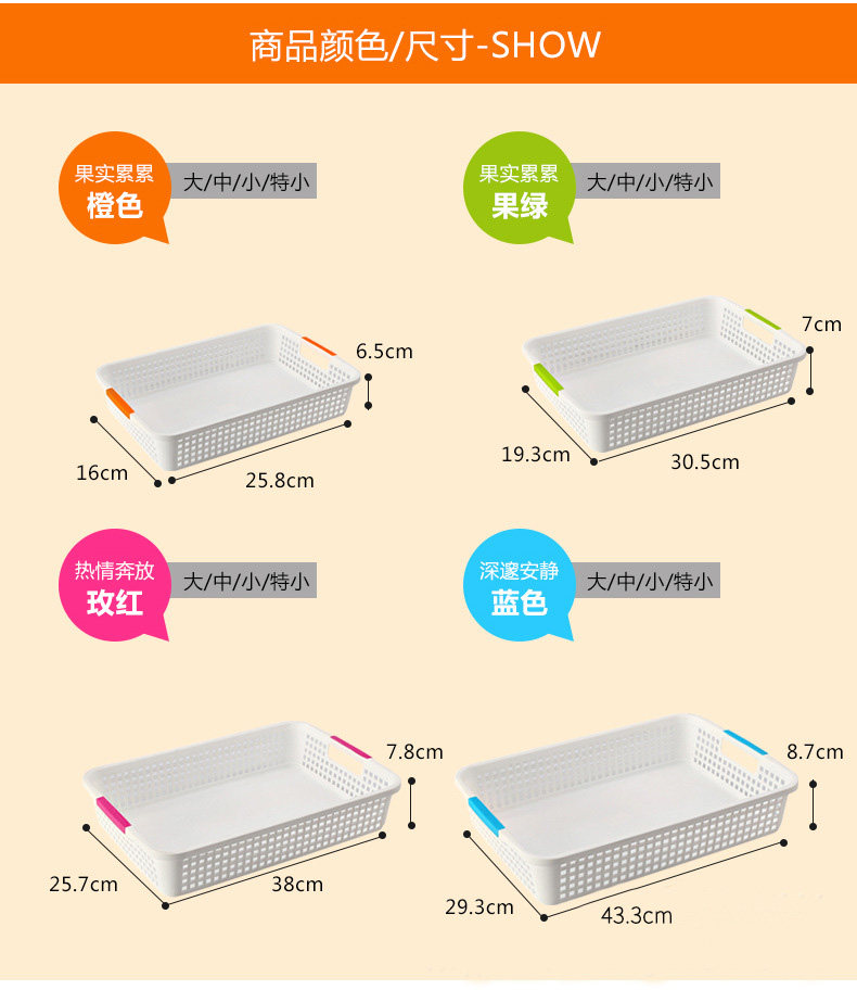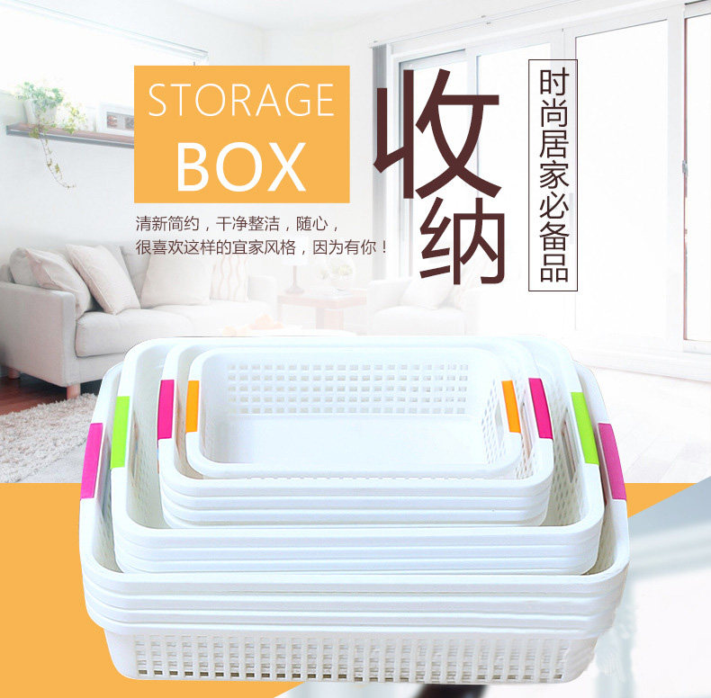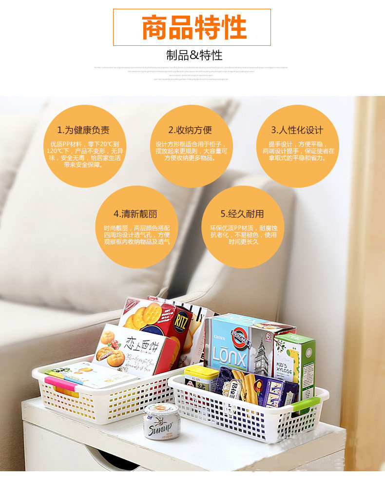 长方形塑料收纳筐杂物收纳框桌面零食收纳盒收纳篮厨房整理篮子