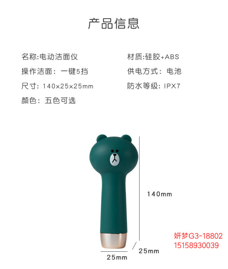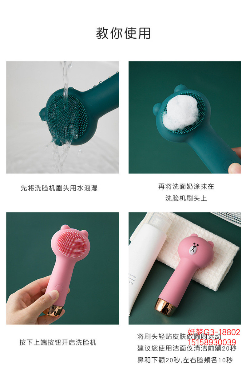 小熊电动硅胶洁面刷去黑头毛孔清洁器洁面仪电池款