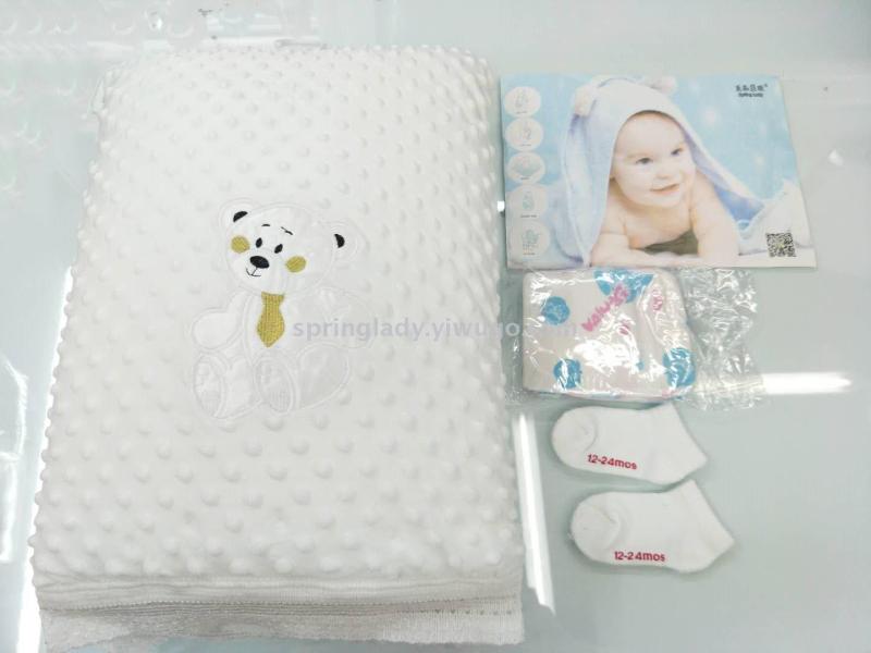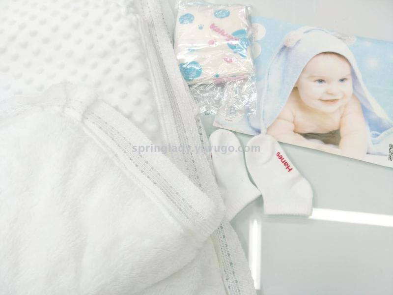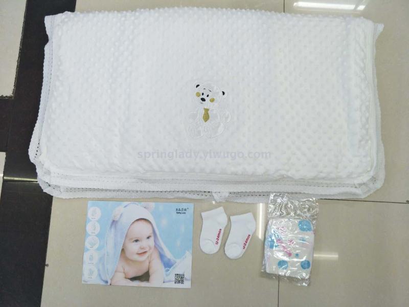 Spring Lady 小熊花边泡泡抱被婴儿宝宝抱被抱毯套装宝宝午睡毯
