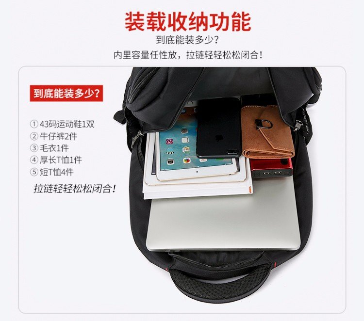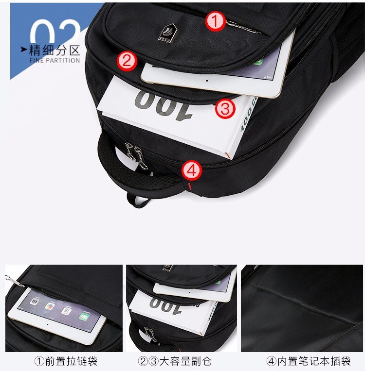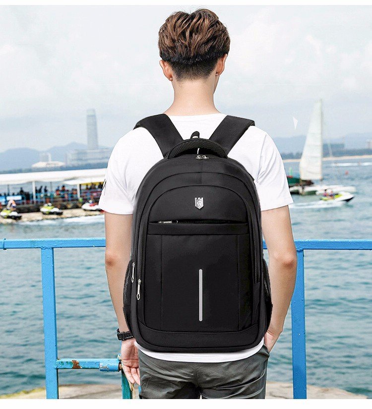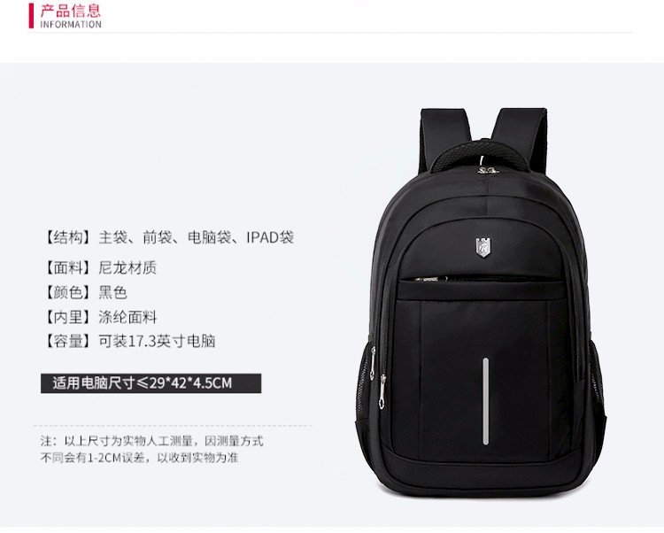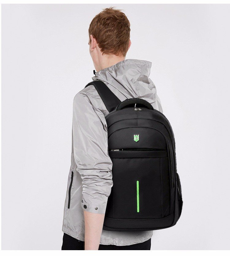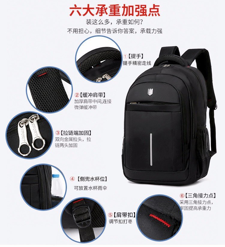 跨境定制新款男士双肩包 尼龙商务电脑包 荧光条大学生书包