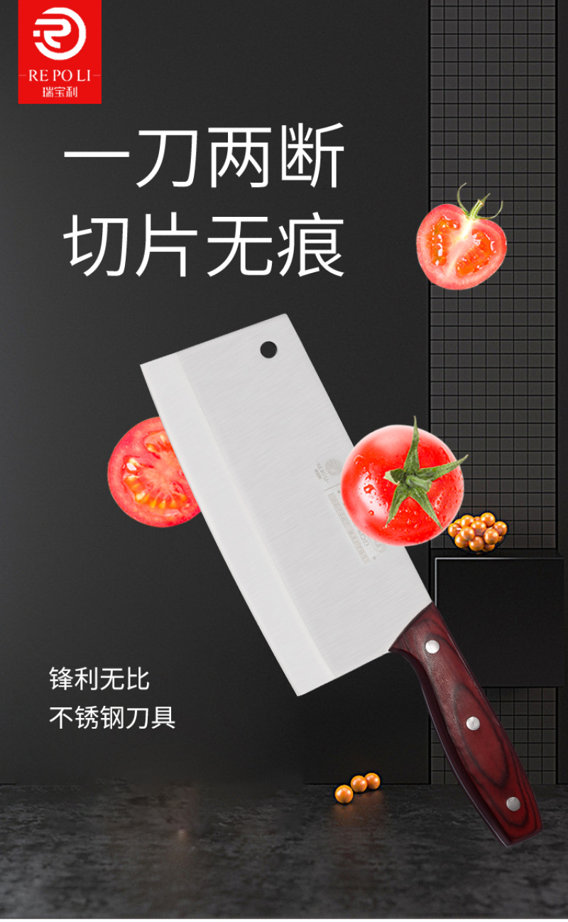【锻打工艺】瑞宝利不锈钢菜刀厨房家用切片刀具锻打锋利厨房家用