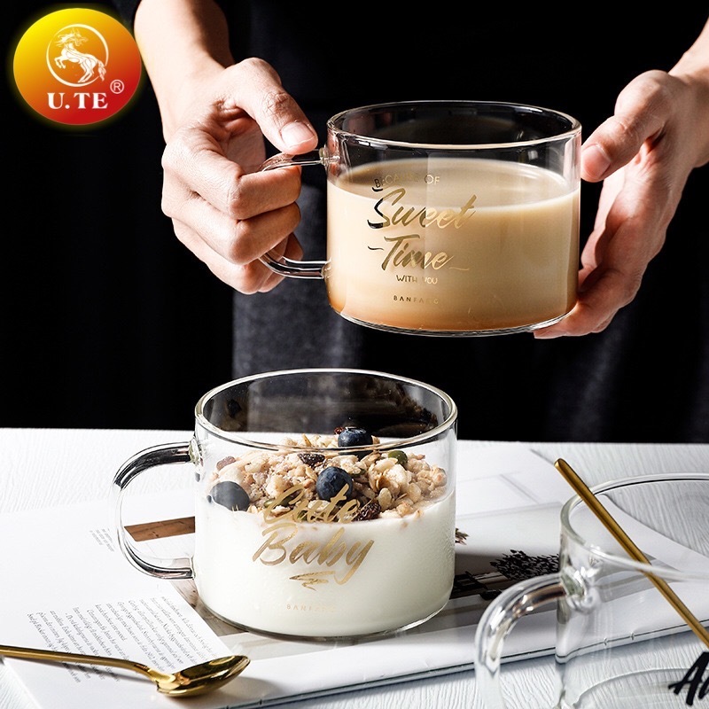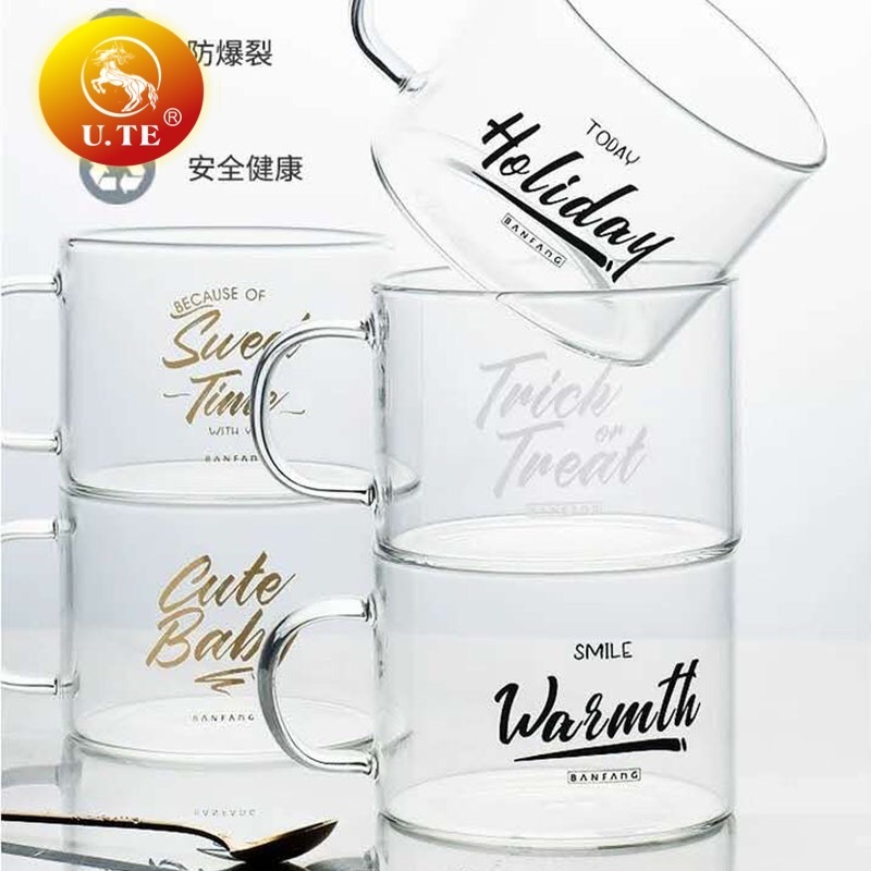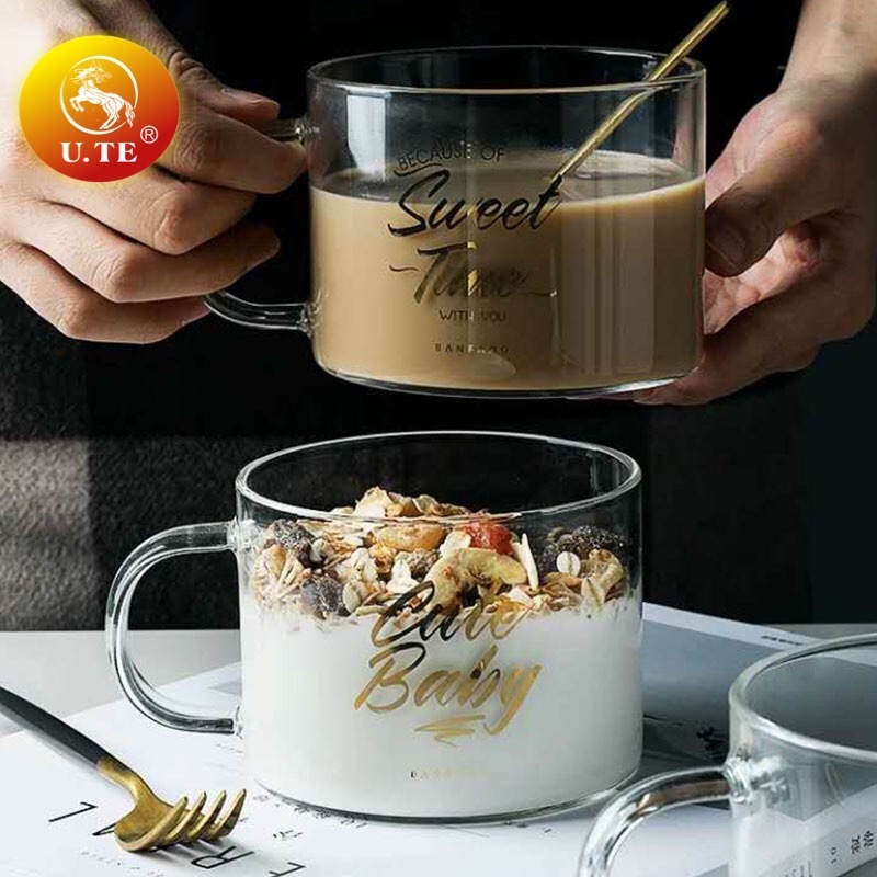 耐热玻璃杯北欧大容量办公室水杯女英文咖啡马克杯把手牛奶早餐杯