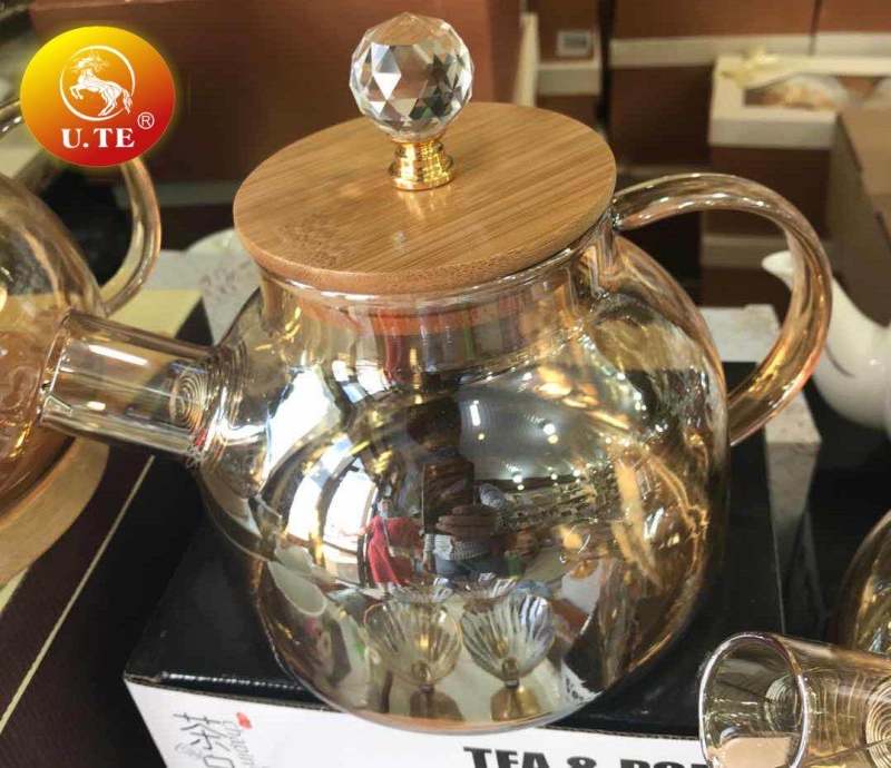 高硼硅镀金玻璃茶壶木盖砖石头