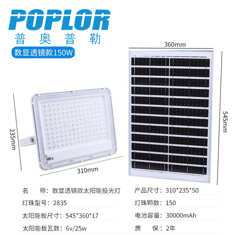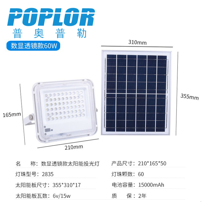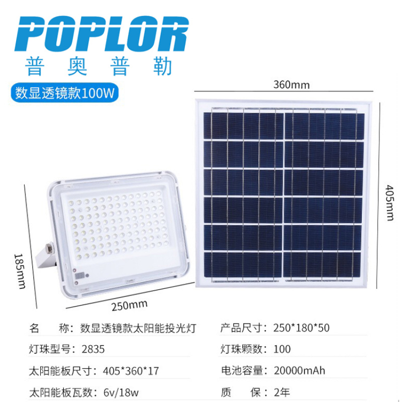 LED太阳能充电投光灯100W户外照明射灯 数字显示工程防水遥控光控