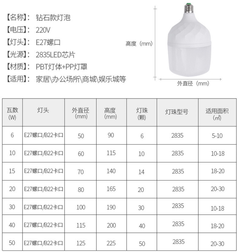 LED高亮球泡灯 10W塑放铝灯泡恒流高流明 钻石款球泡T泡270度发光