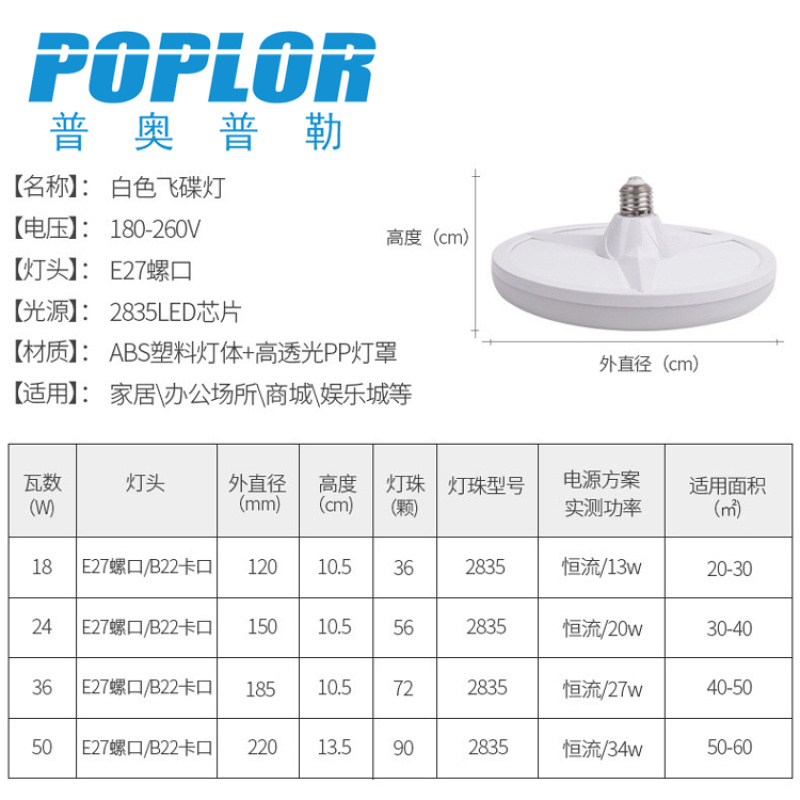 LED大功率白色款飞碟灯 18W球泡蘑菇灯PC工矿灯横流高亮高流明