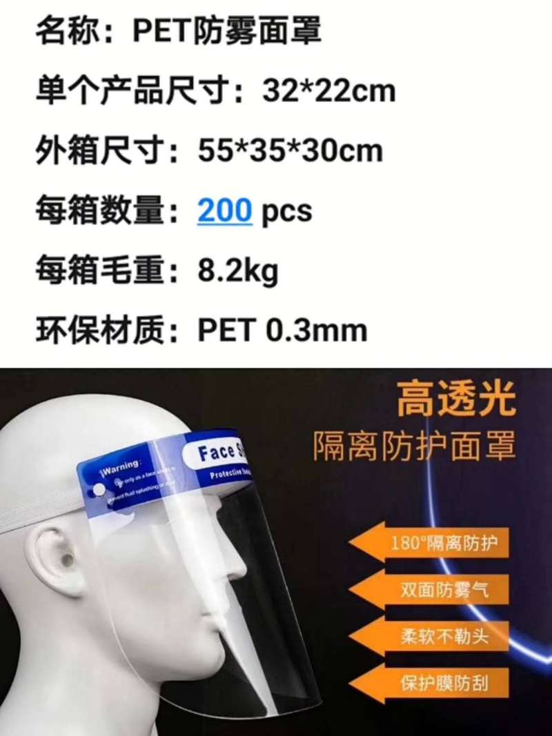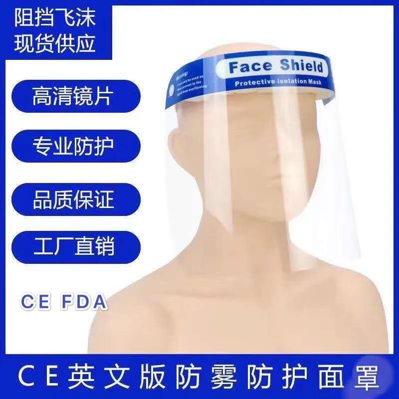 透明防护面罩 face shield 双面防雾 PET防护面罩 防飞沫面罩