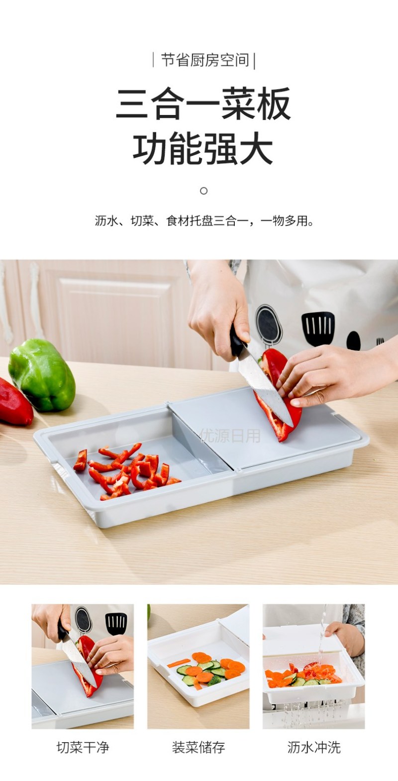 日式三合一砧板厨房多功能翻盖切菜板家用塑料带沥水篮案板直销
