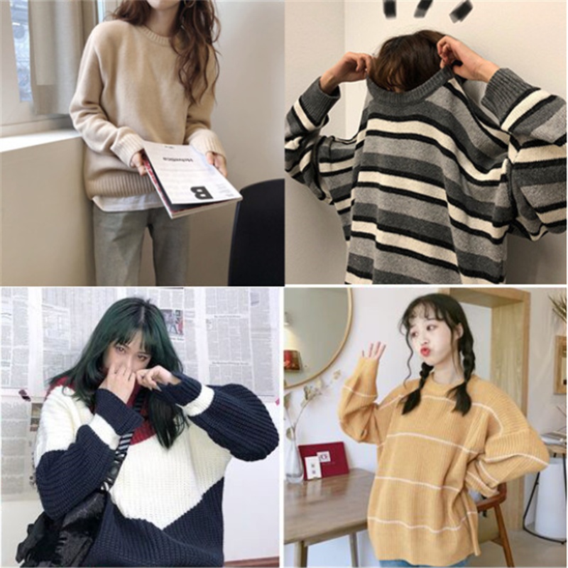 清仓捡漏秋冬韩版套头女装毛衣慵懒风针织杂款毛衣女外贸地摊尾货