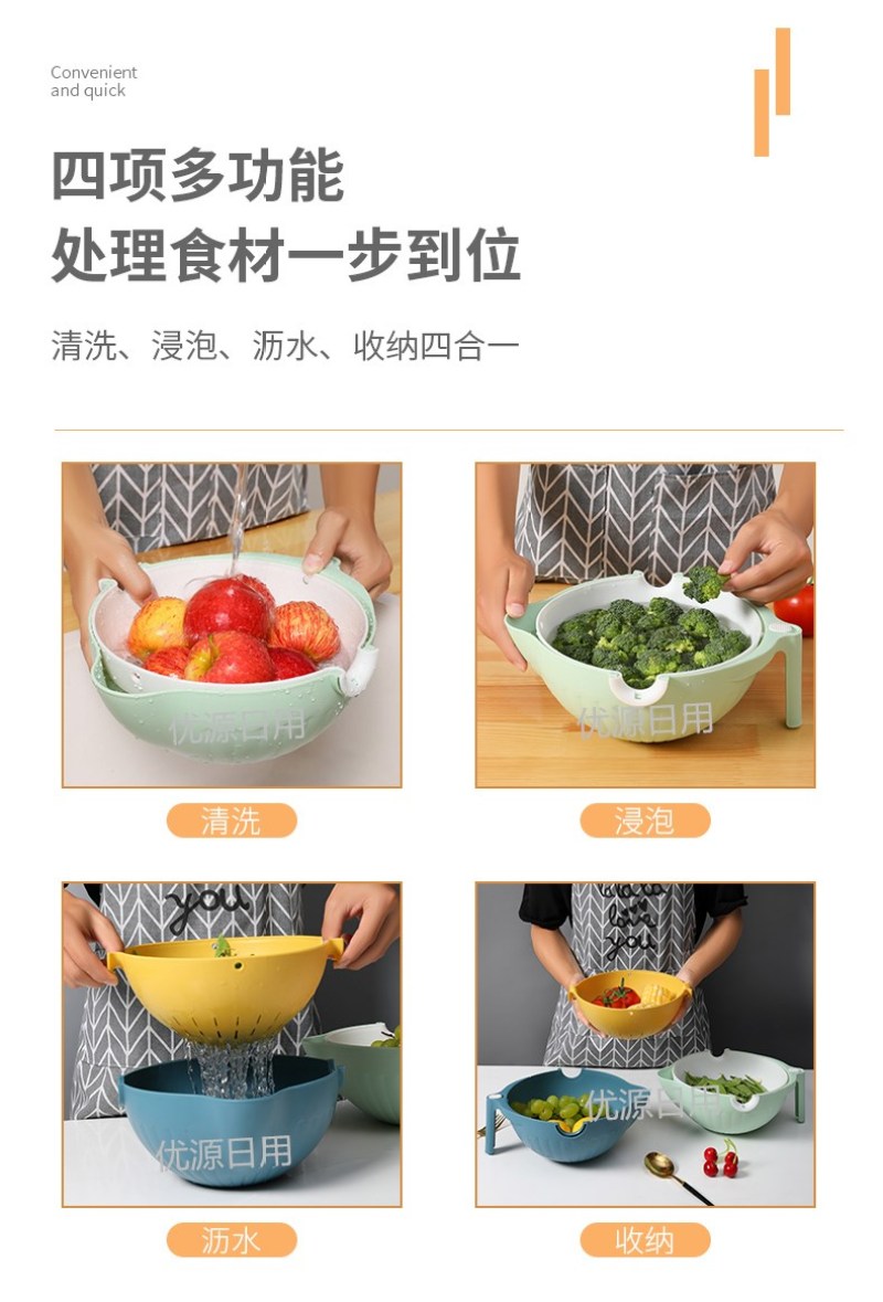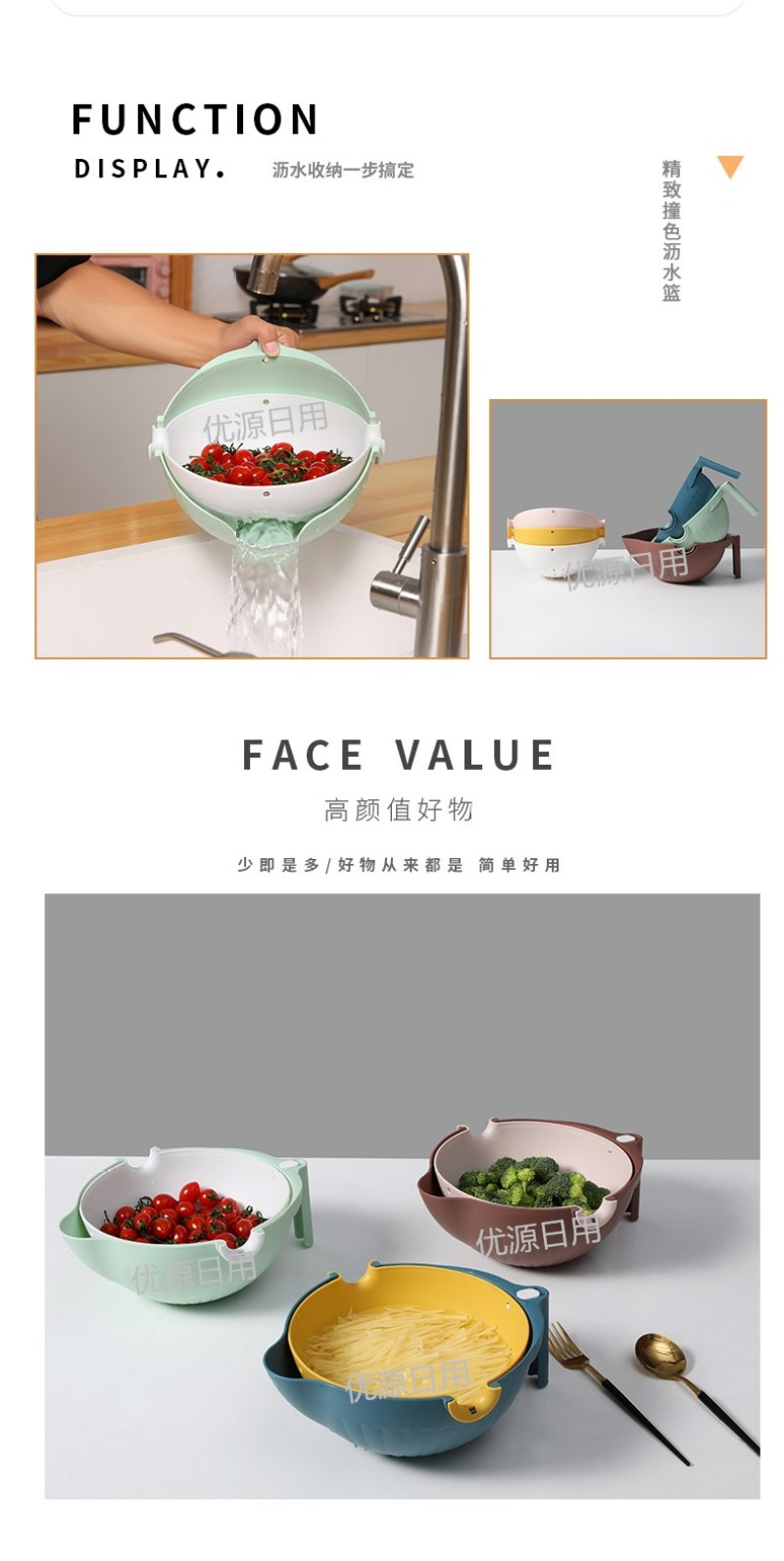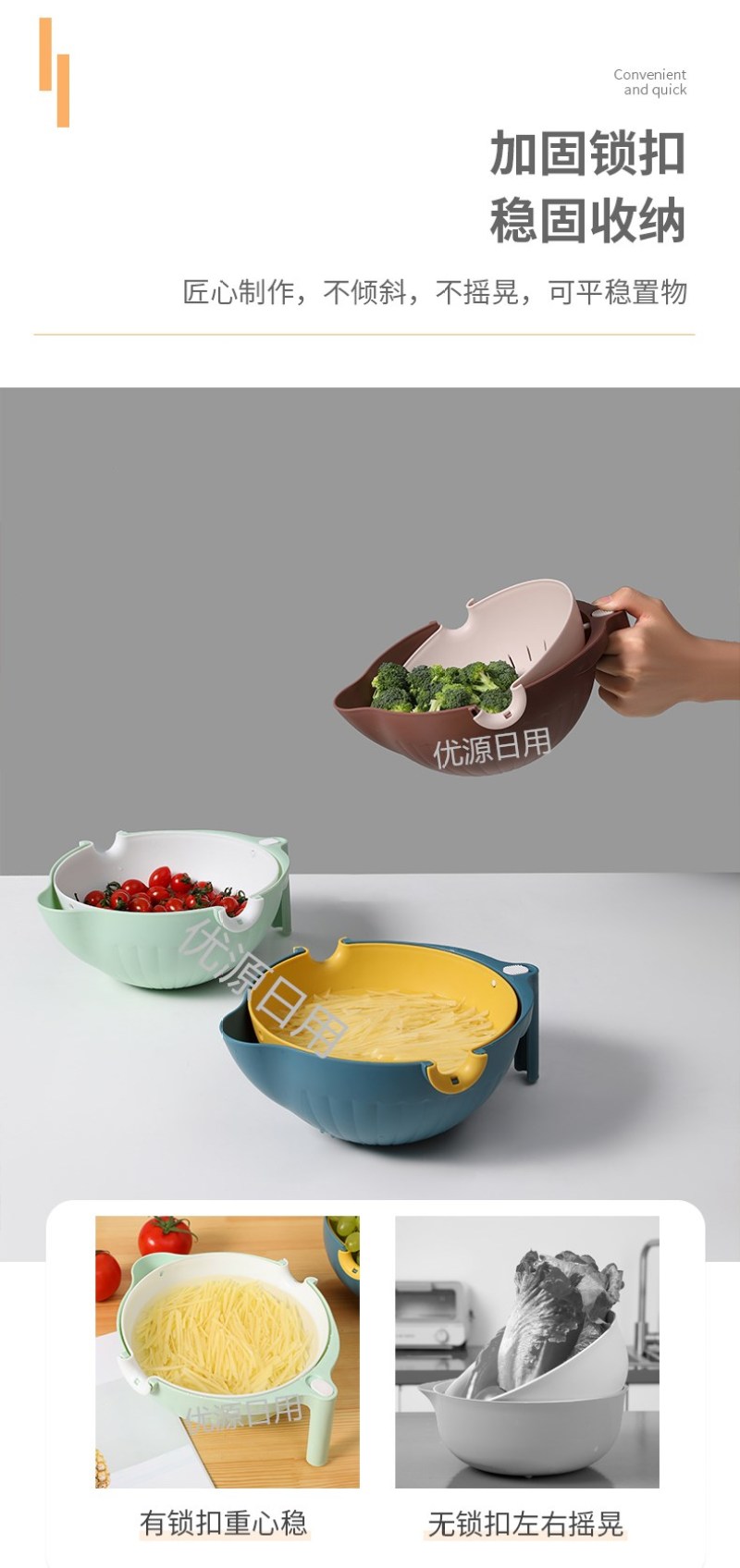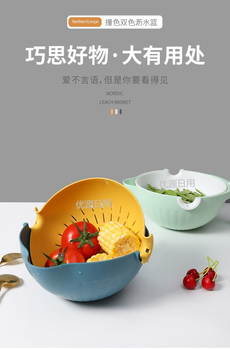 家用创意双层果蔬沥水篮 厨房果蔬洗菜盆 塑料洗菜篮子淘米器