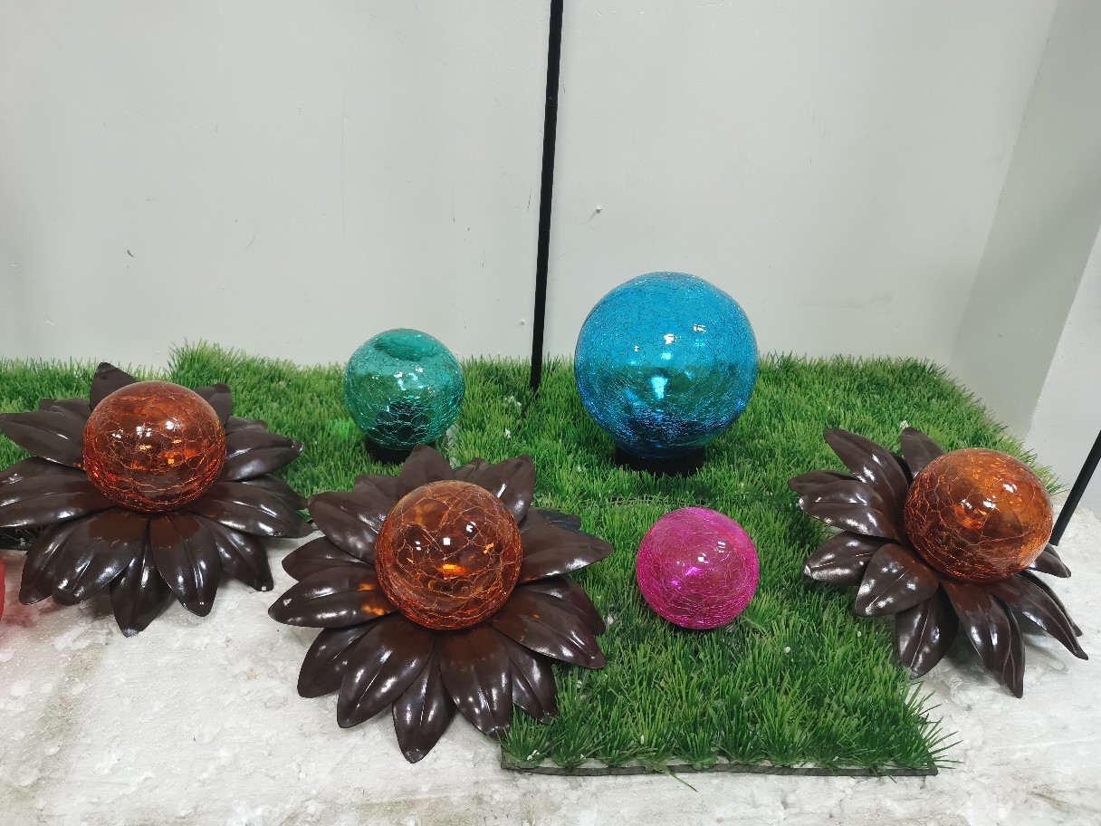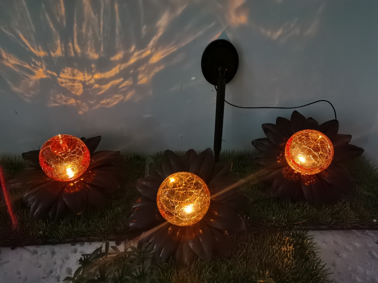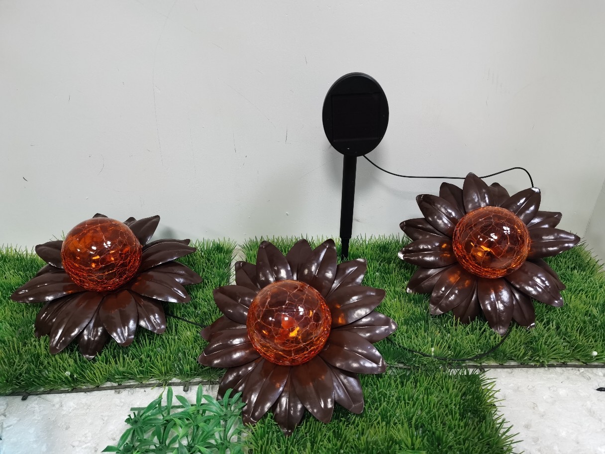 外贸专供花园庭院地插式个性创意一串3头太阳能灯铁艺