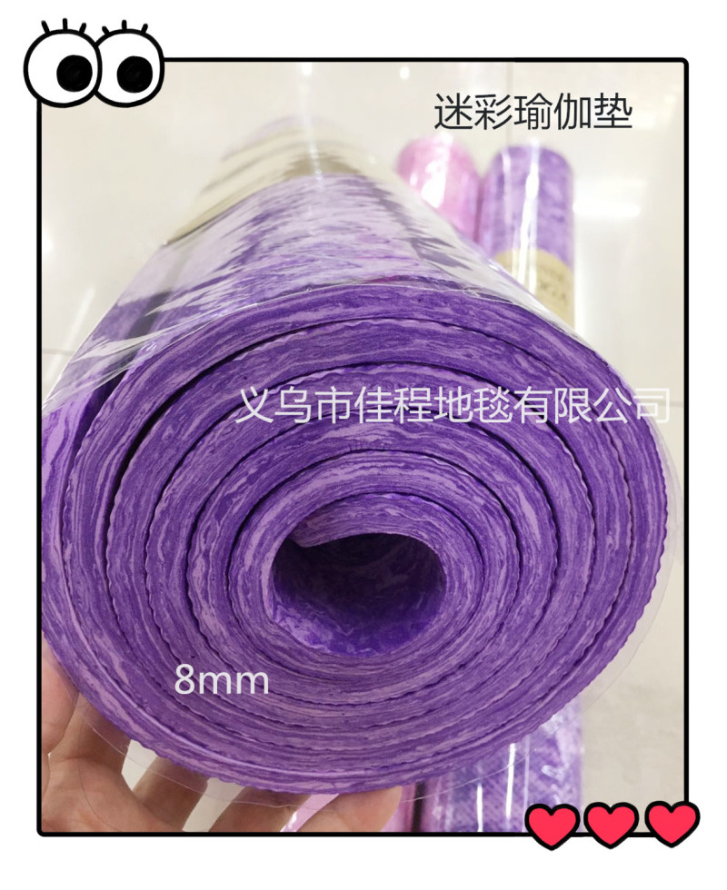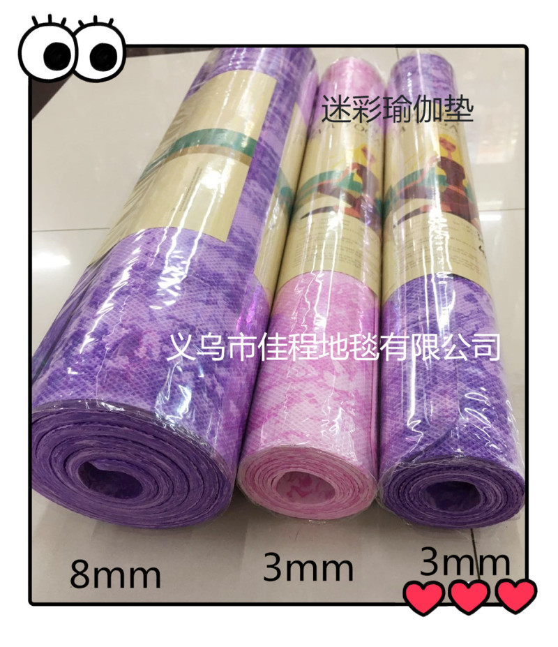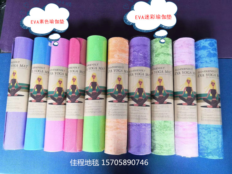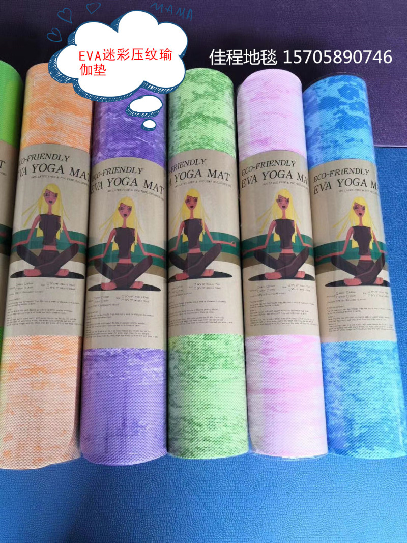 新款EVA压纹迷彩瑜伽垫 运动垫 户外垫 EVA垫 练习垫 迷彩瑜伽垫 质量好,尺寸都是61*173cm, 常规5个颜色:梅红,粉色,果绿,紫色,蓝色,纸箱包装。如有需要可以搭配背带,网袋, 价格另算 联系电话 15705890746
