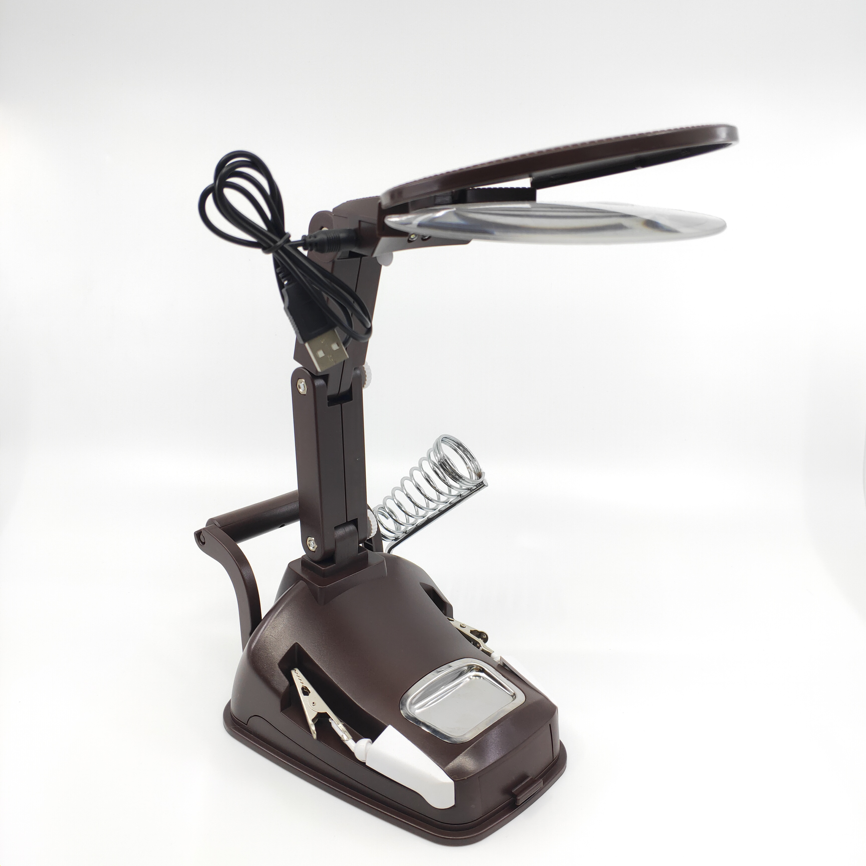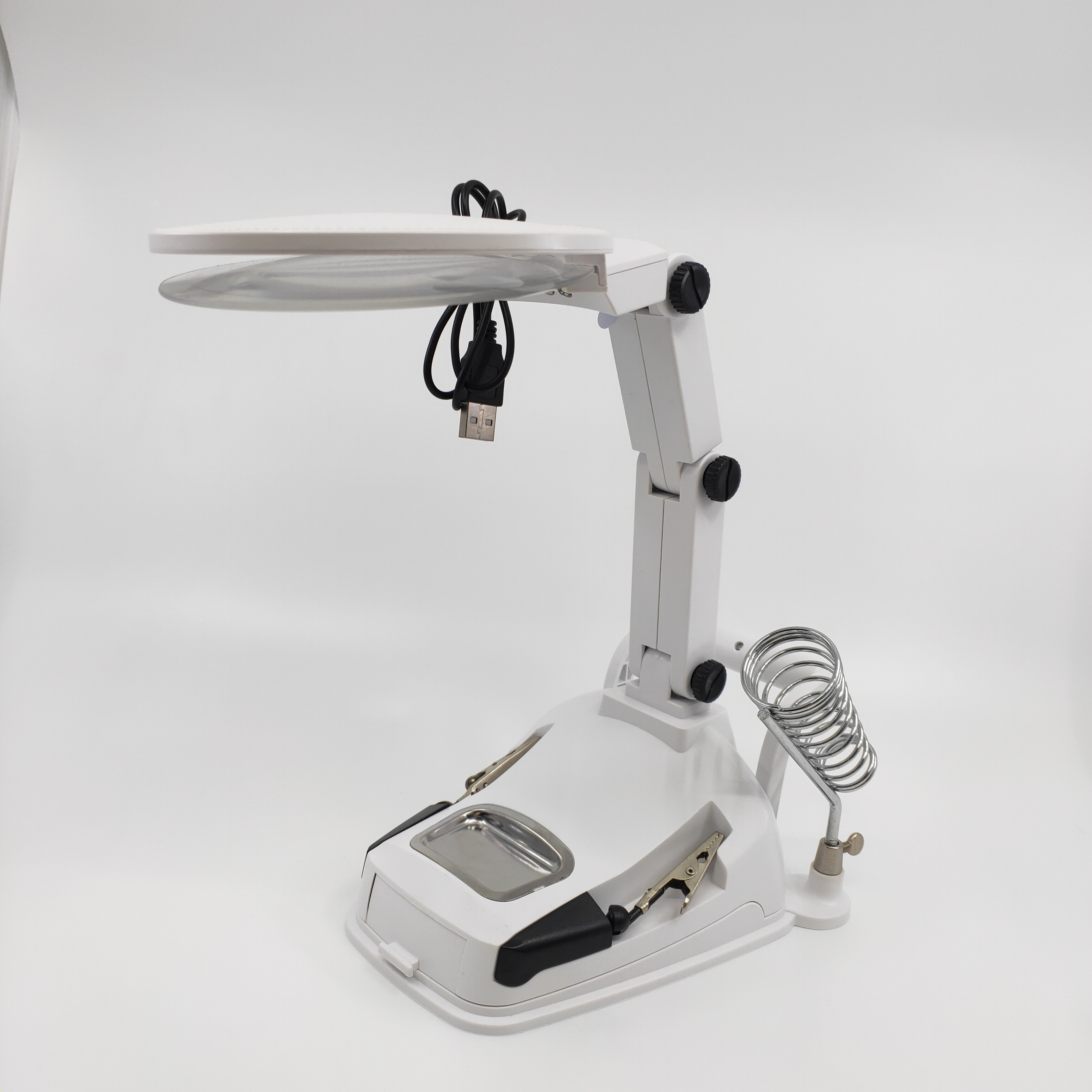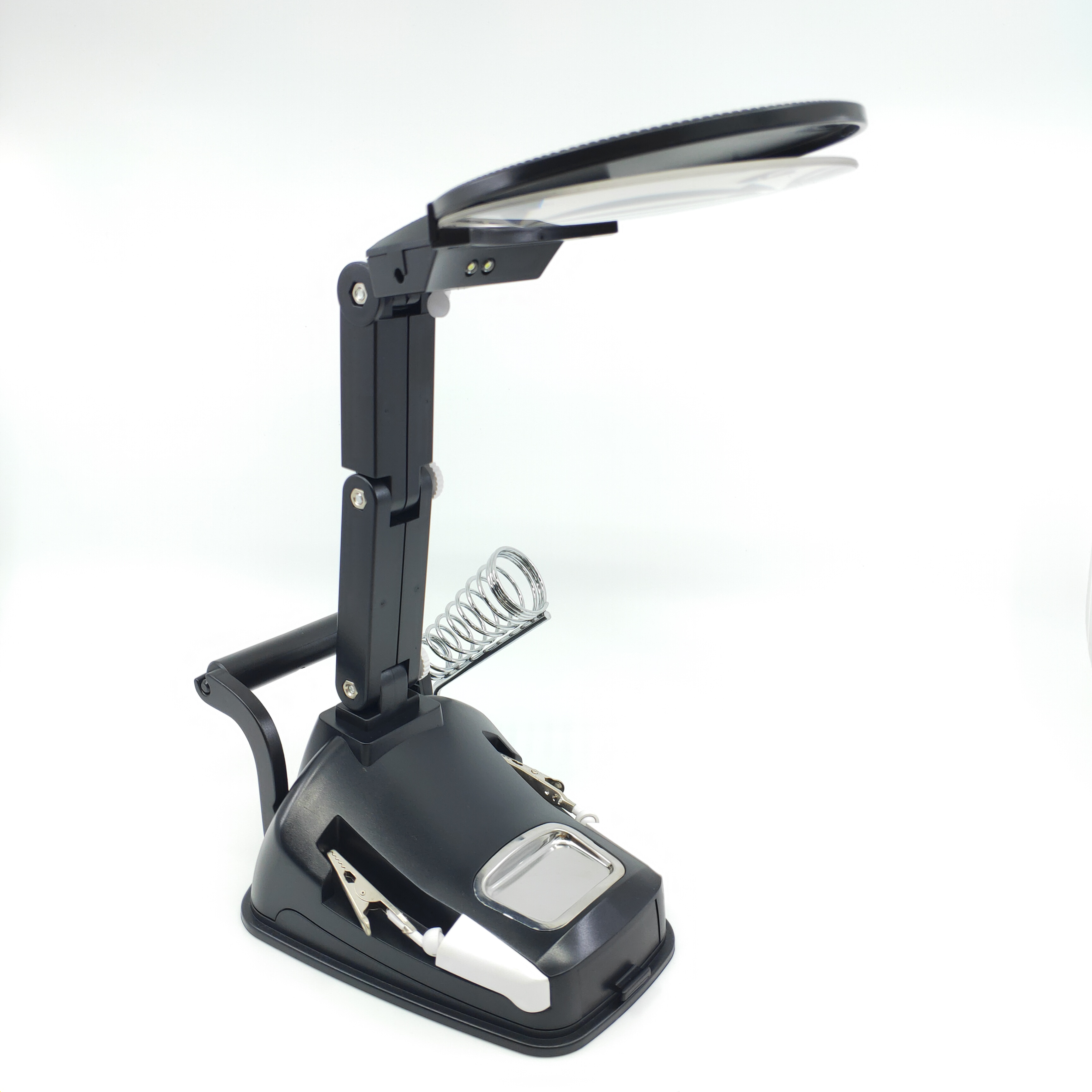 7027B新款带灯台式双LED灯支架接电源焊接维修理手机电路板放大镜