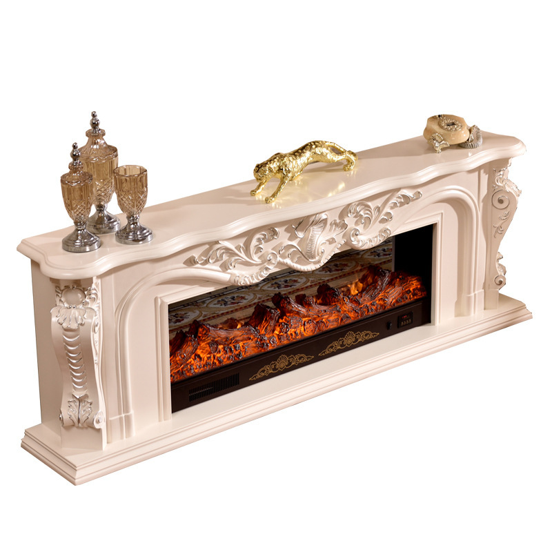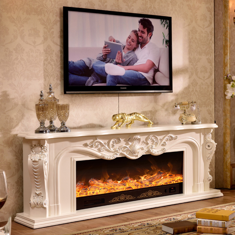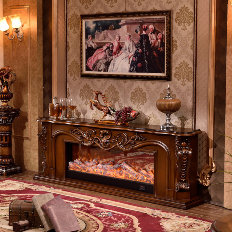 外贸专供2米欧式壁炉实木美式背景墙壁炉架仿真火取暖壁炉芯