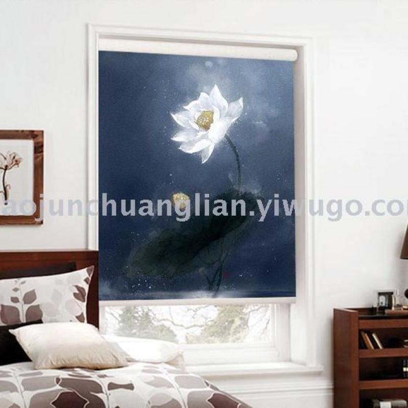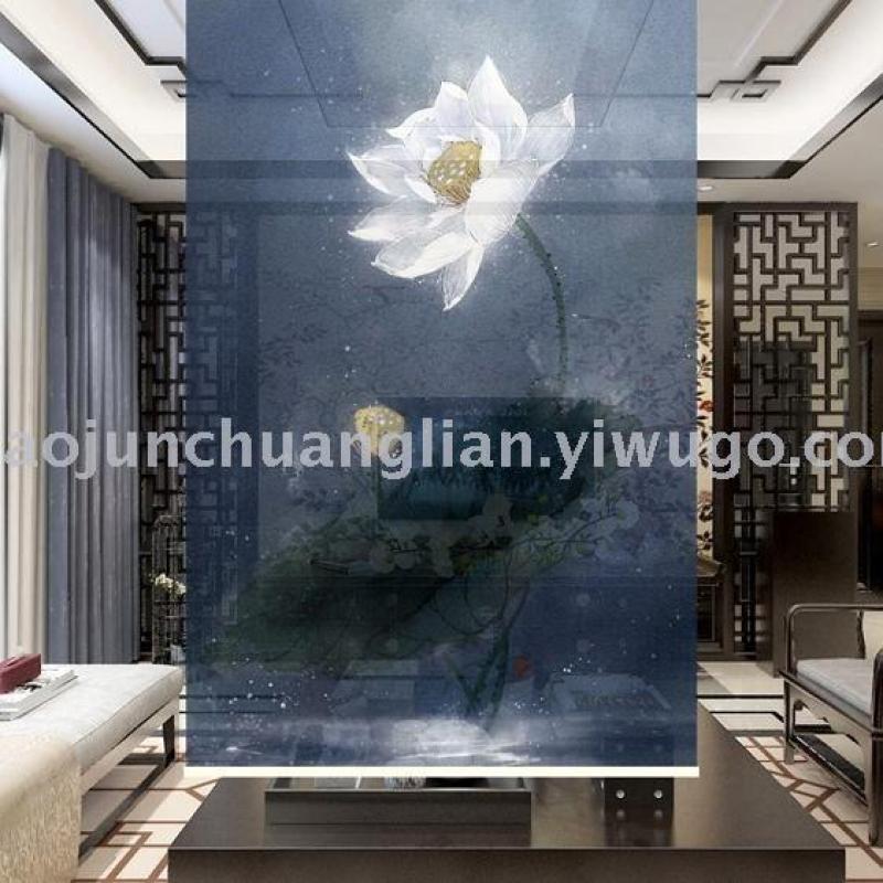 新中式窗帘挂帘卷帘布帘帘子隔断屏风办公室卷帘遮光窗帘