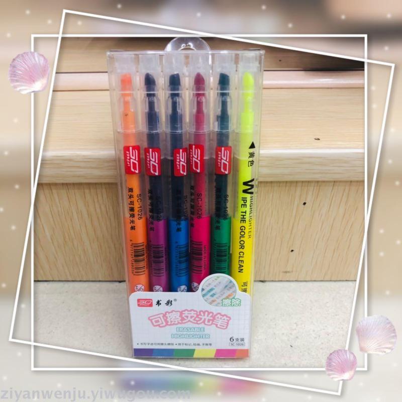 双头可擦荧光笔一头写一头擦6色笔DIY手帐笔神奇记号笔