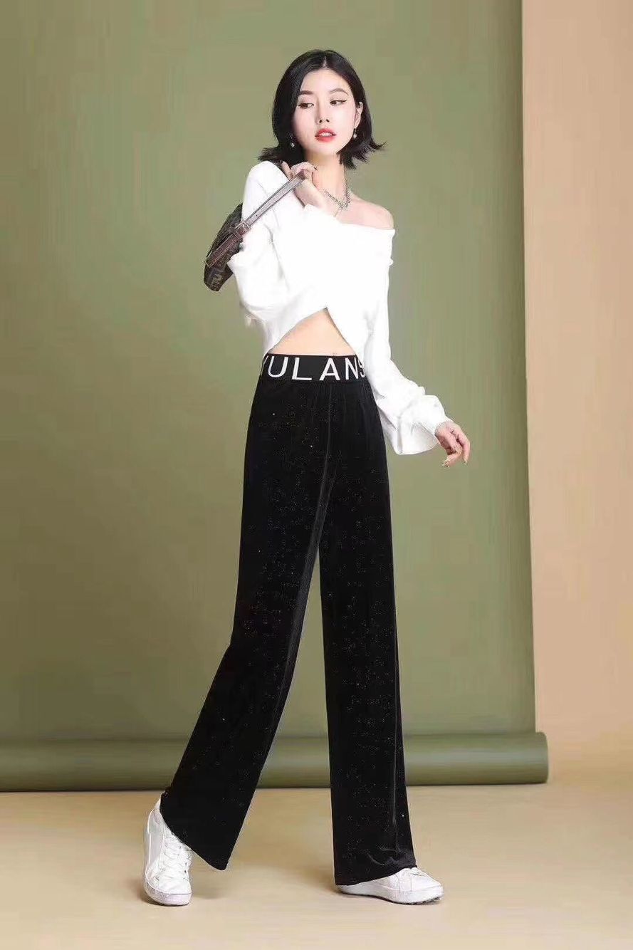 2020秋冬新款抖音微商爆款闪闪钻石金丝绒阔腿裤高腰垂感休闲拖地