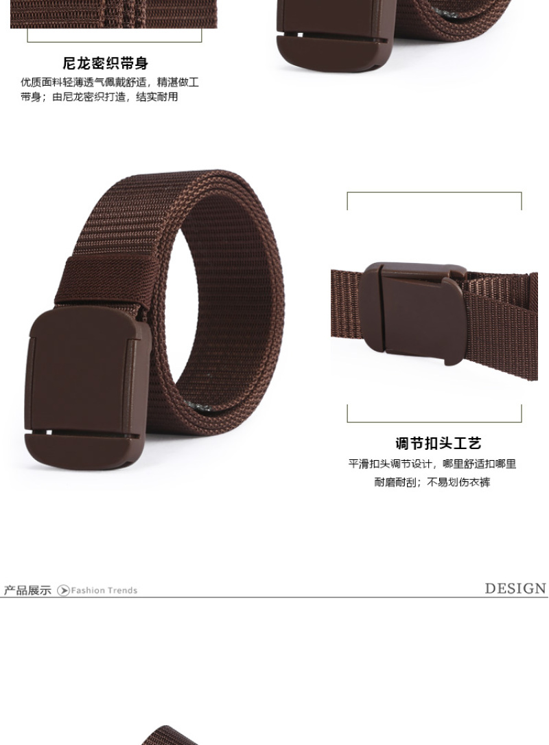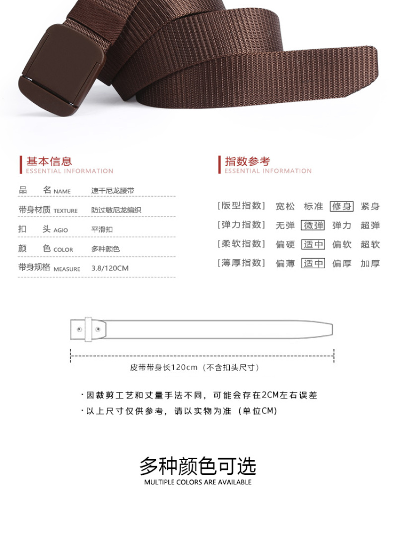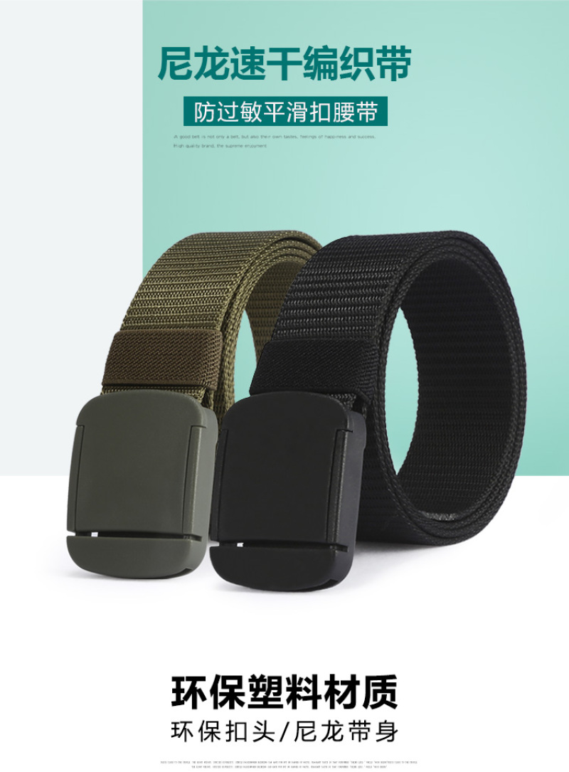 厂家直销男士尼龙户外运动防过敏皮带休闲百搭速干平滑扣腰带批发