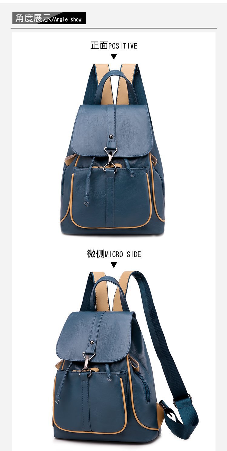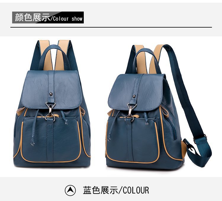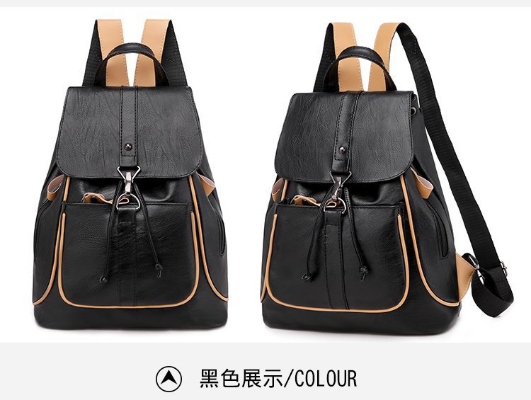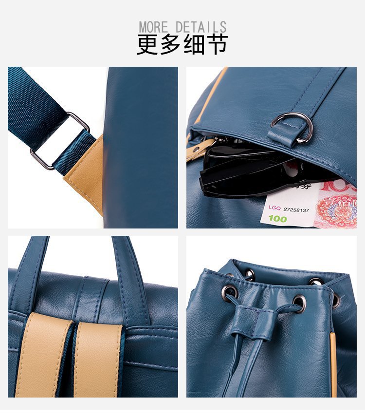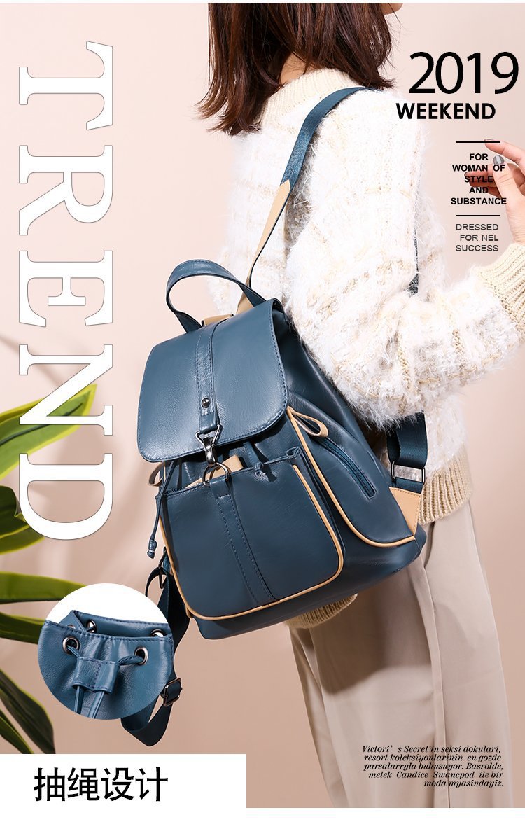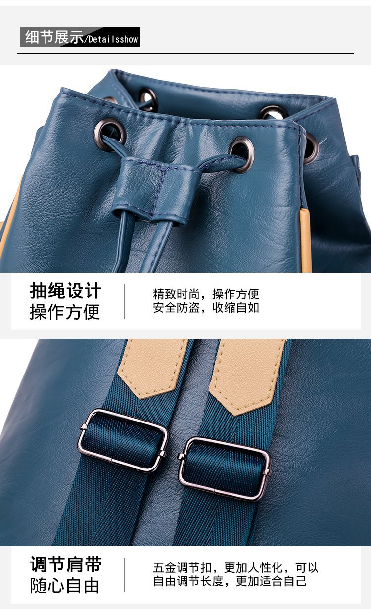 外贸新款学生书包时尚撞色旅行包水桶抽绳淑女爆款双肩女包