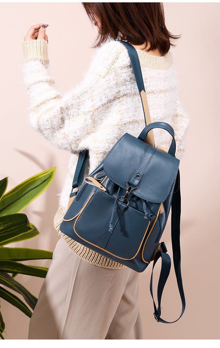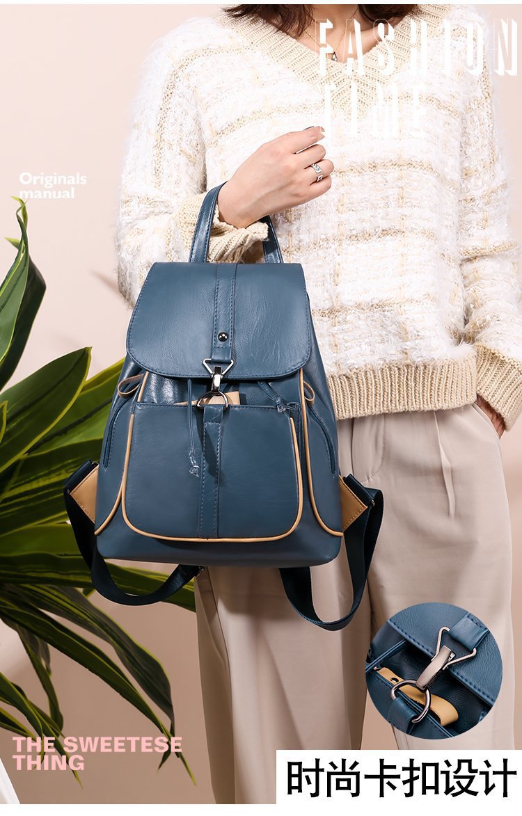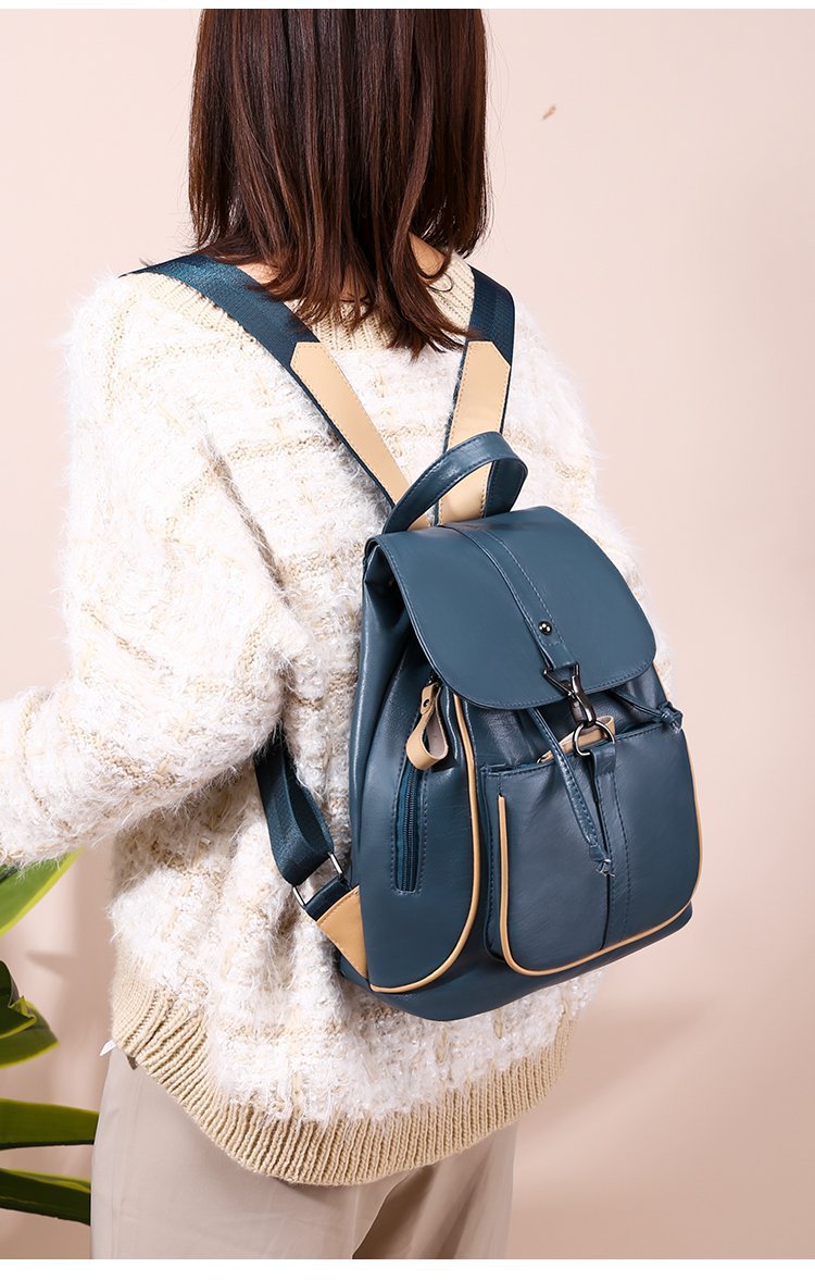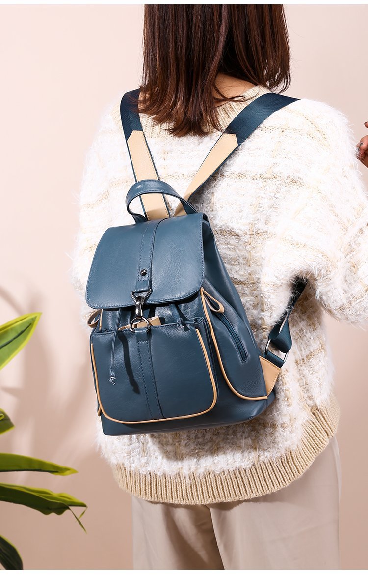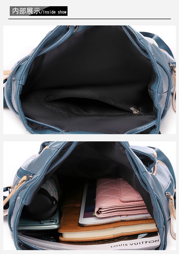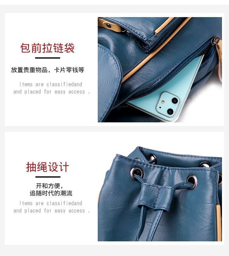 外贸新款学生书包时尚撞色旅行包水桶抽绳淑女爆款双肩女包