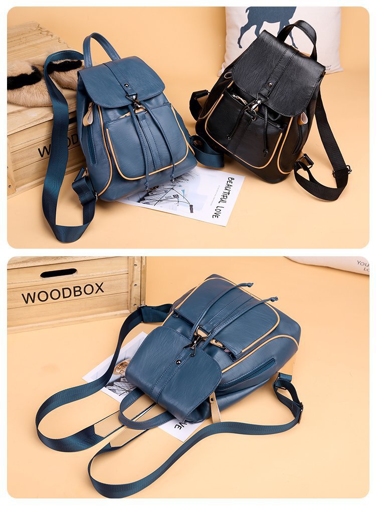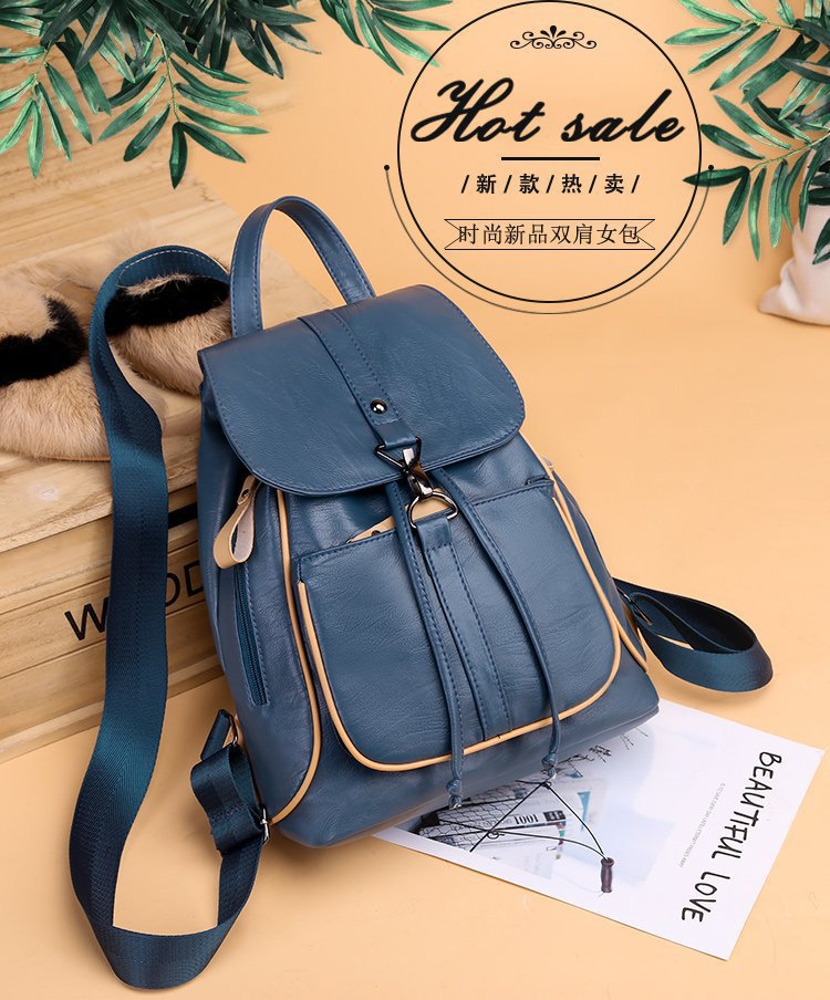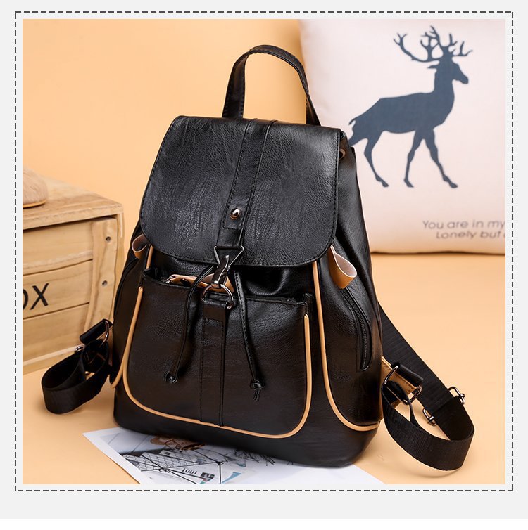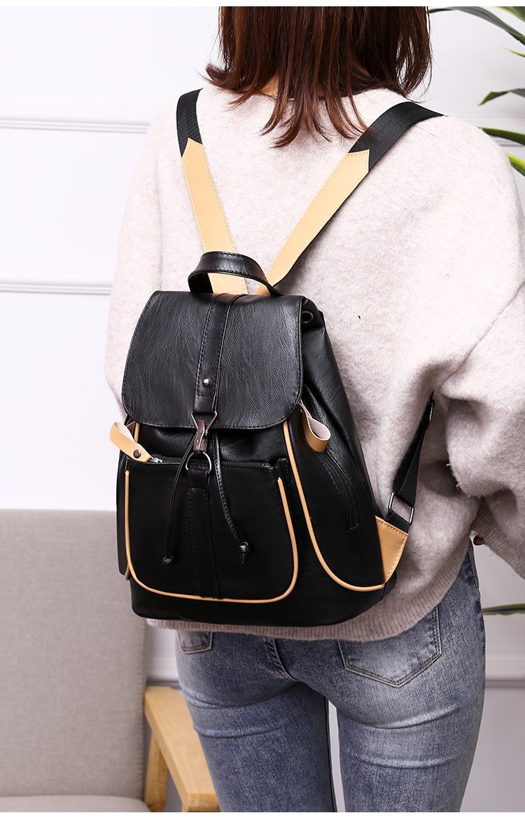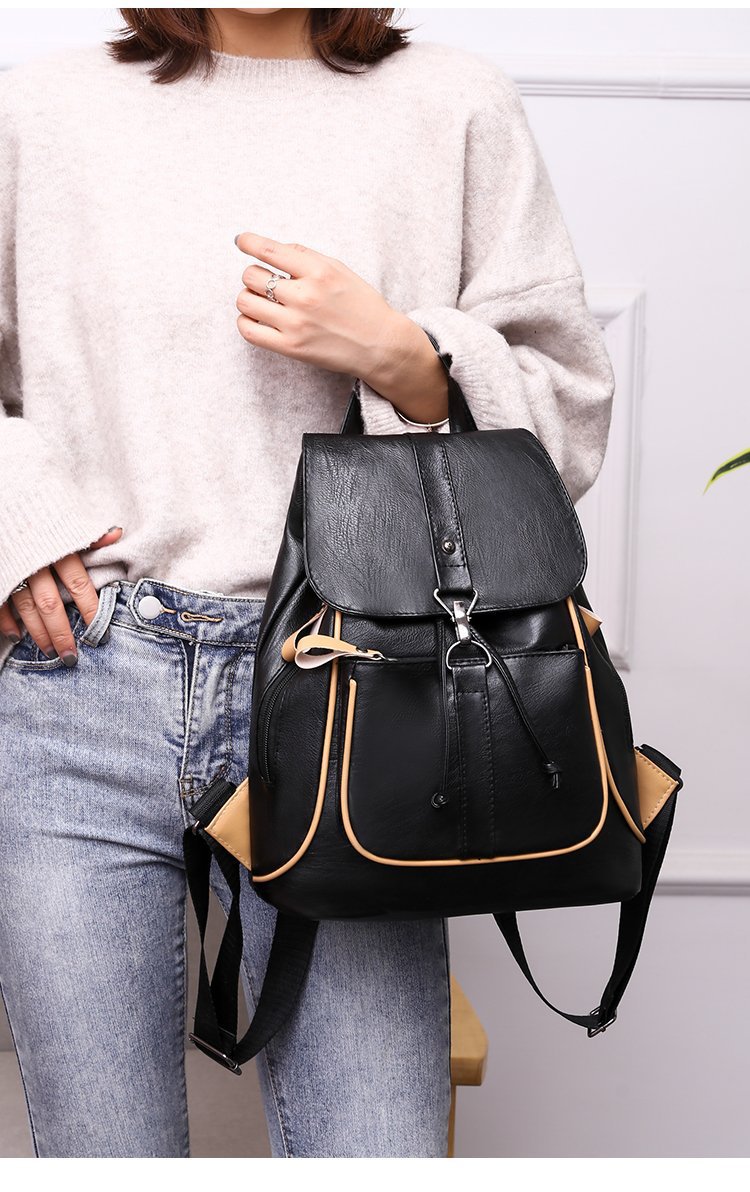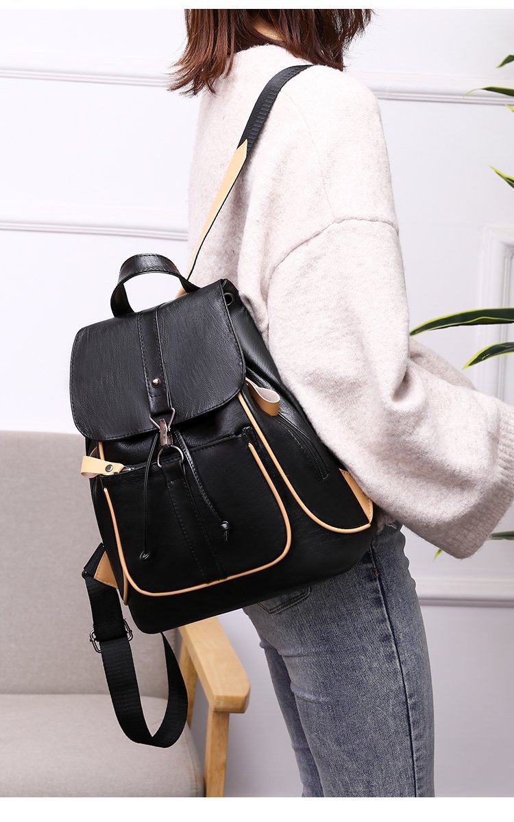 外贸新款学生书包时尚撞色旅行包水桶抽绳淑女爆款双肩女包