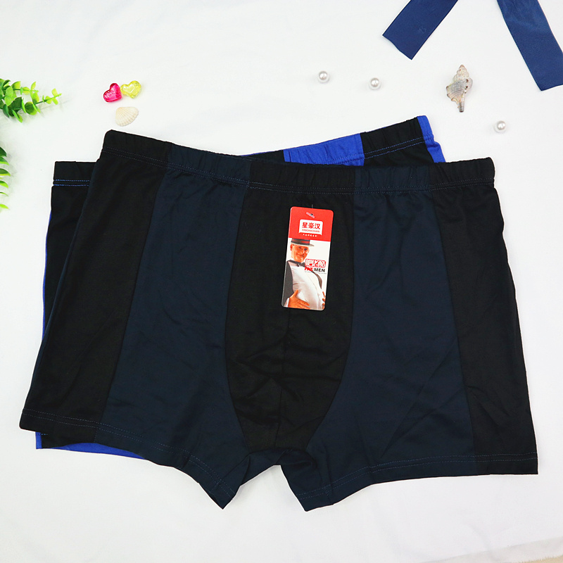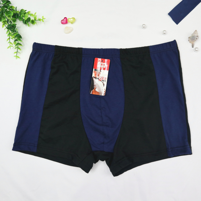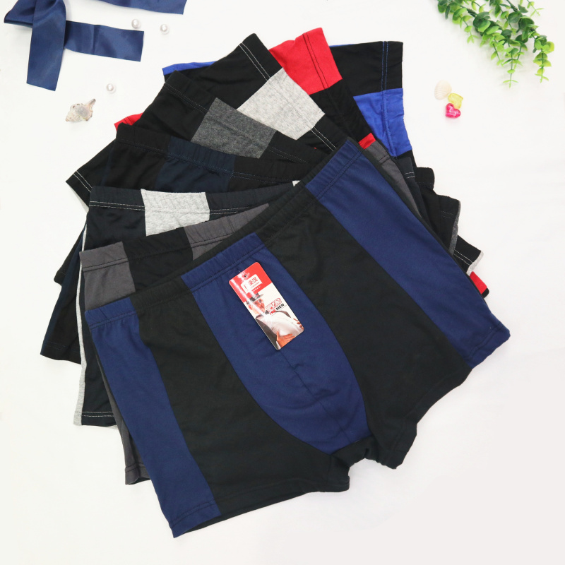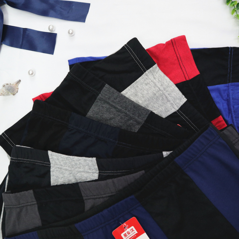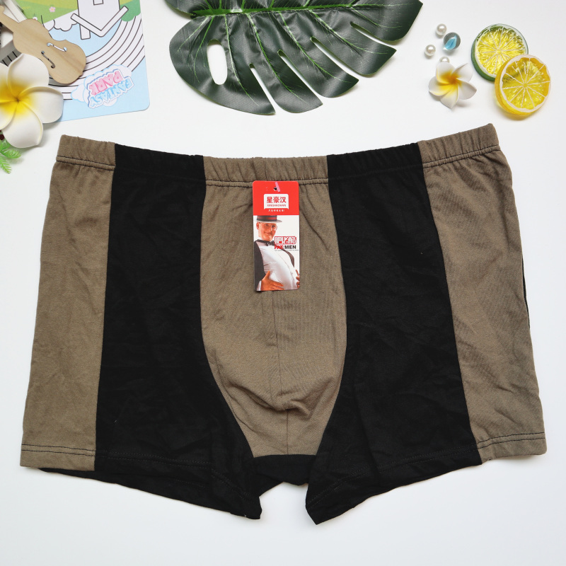 厂家热销男士全棉大码肥佬平角裤拼色透气宽松弹力纯棉四角裤地摊