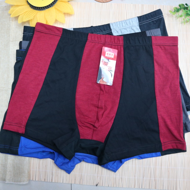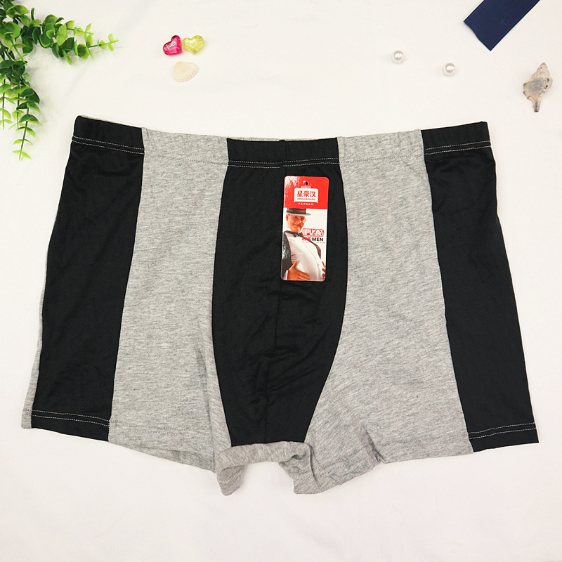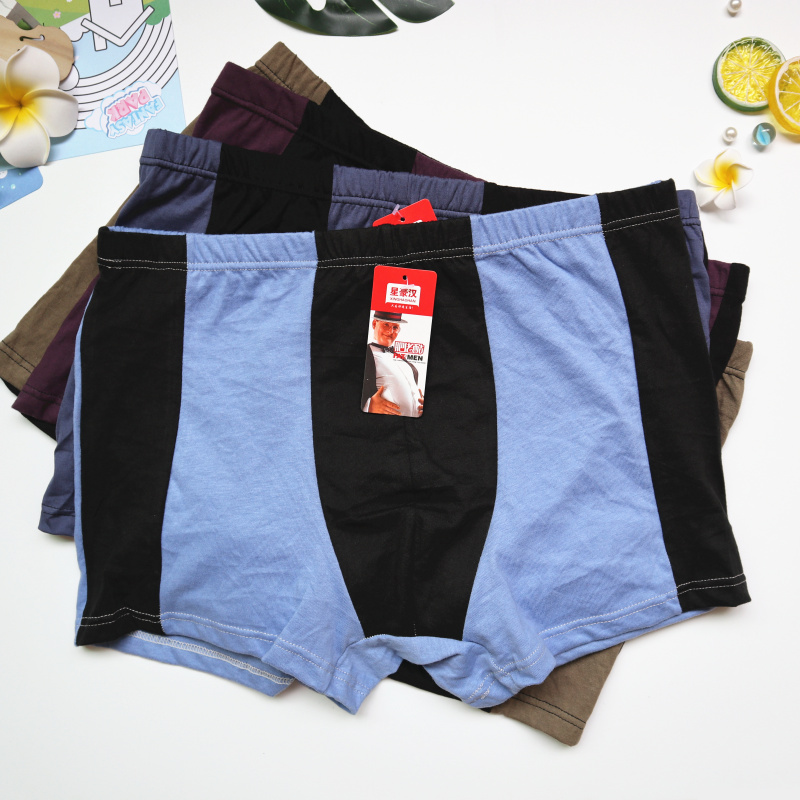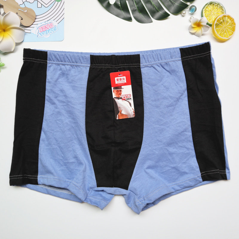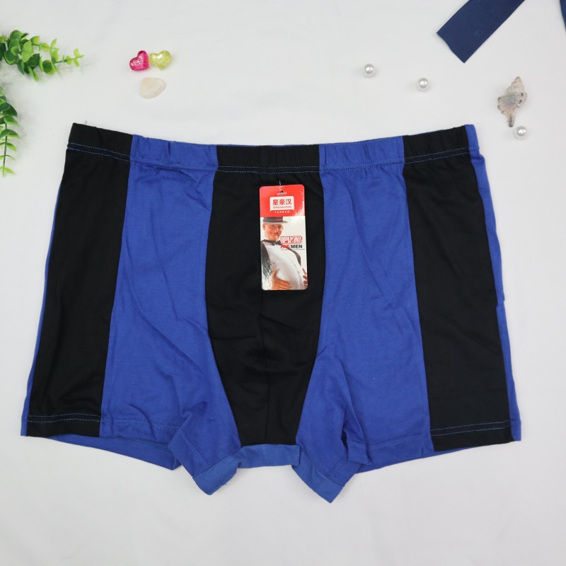厂家热销男士全棉大码肥佬平角裤拼色透气宽松弹力纯棉四角裤地摊