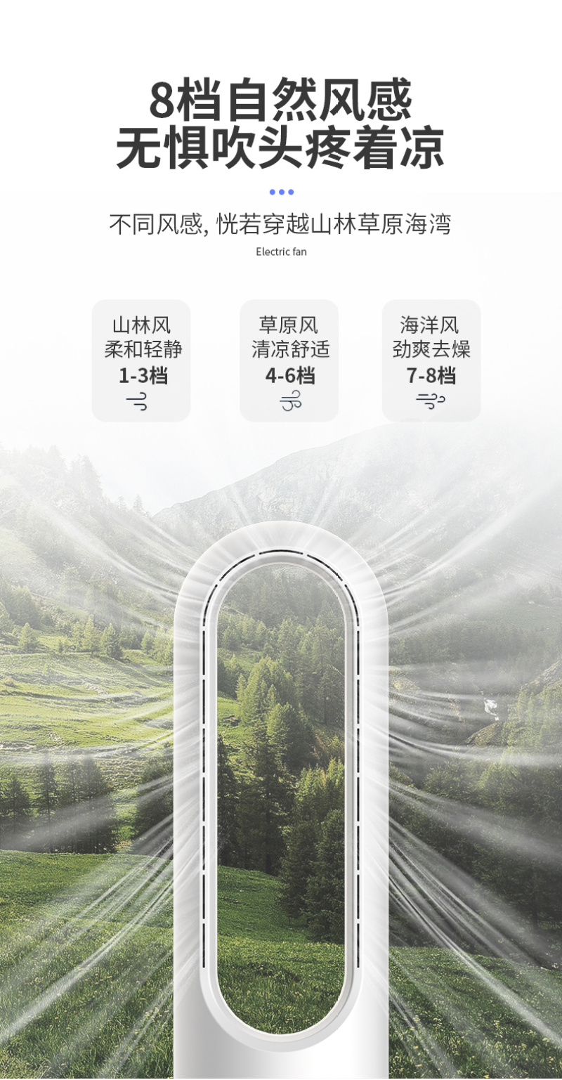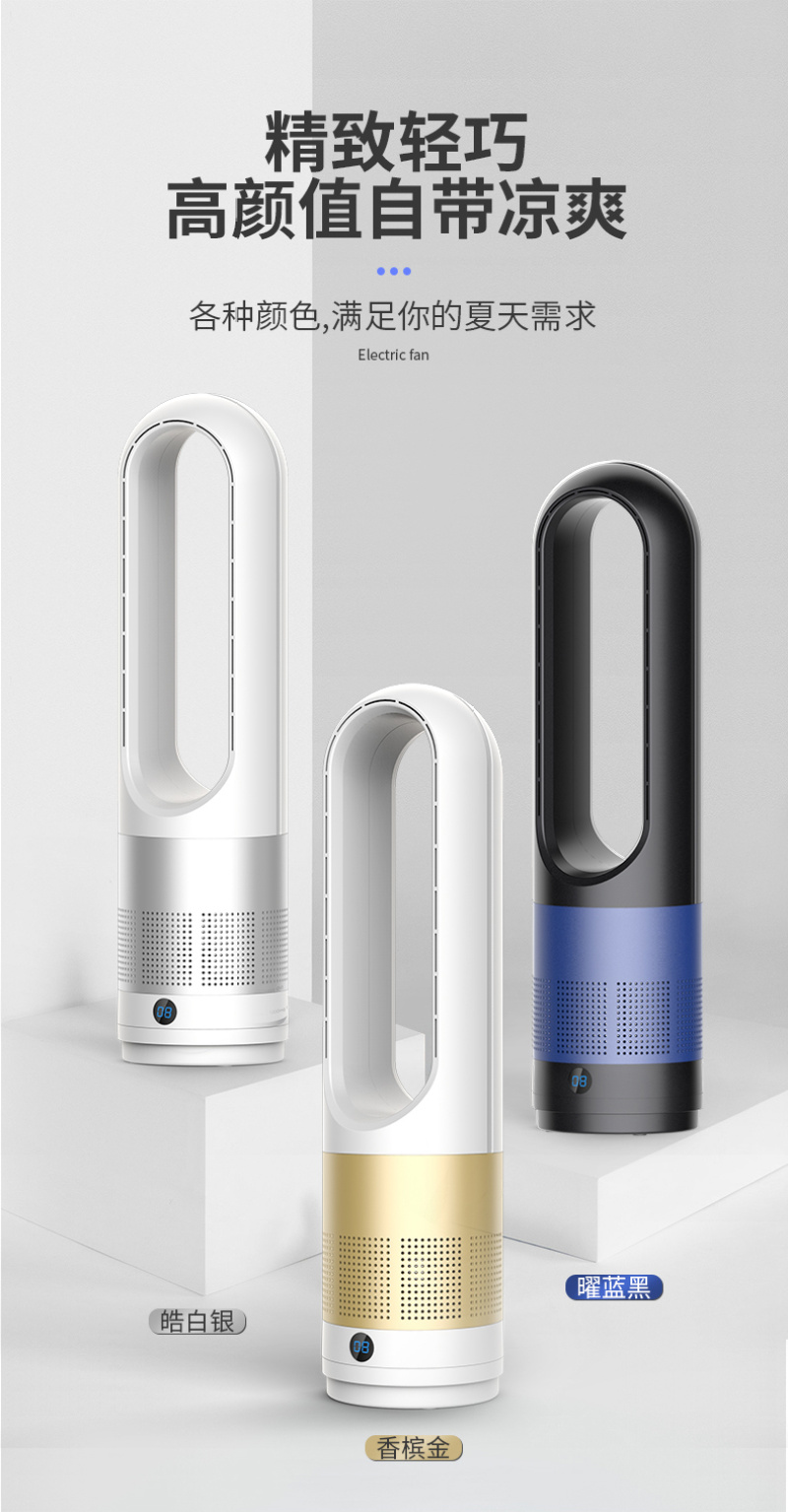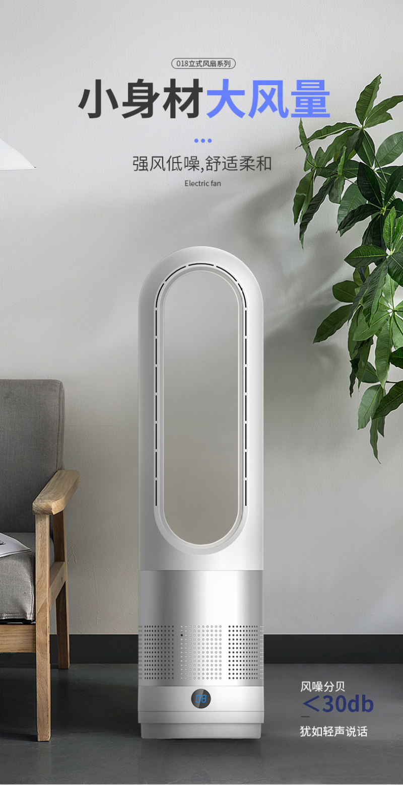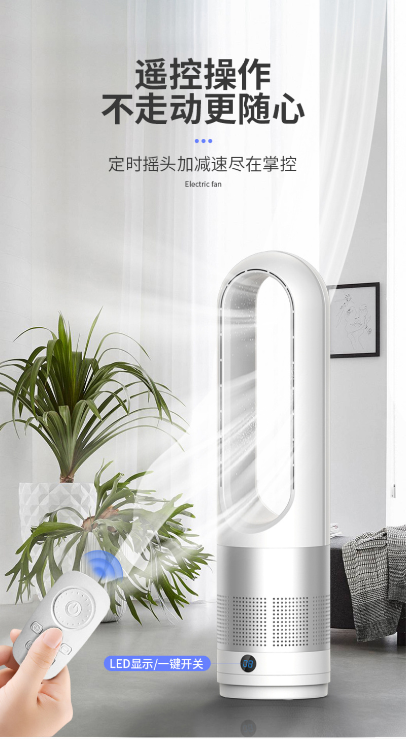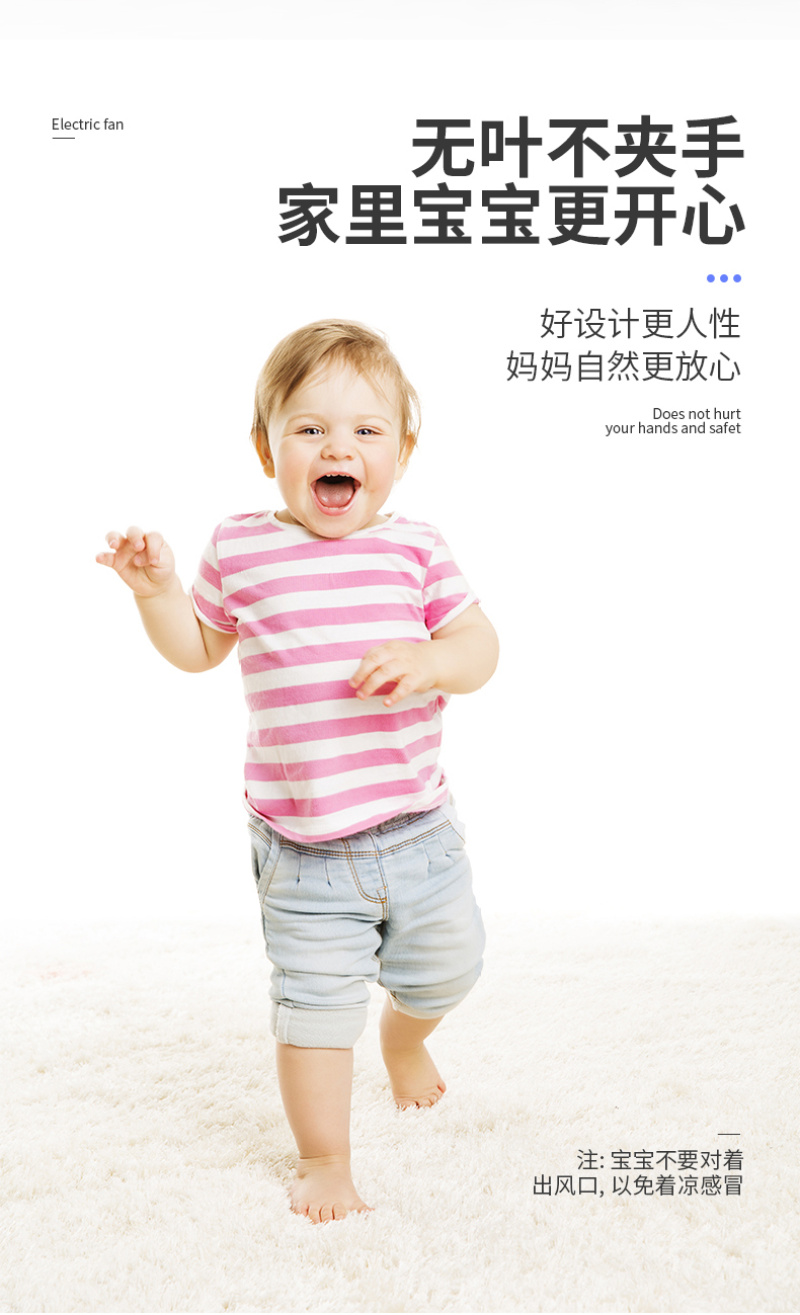 无叶风扇家用遥控静音18寸8档风速80度摇头小孩安全