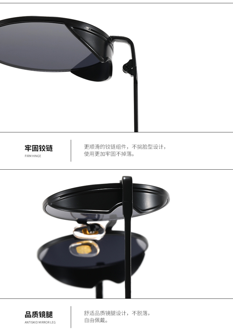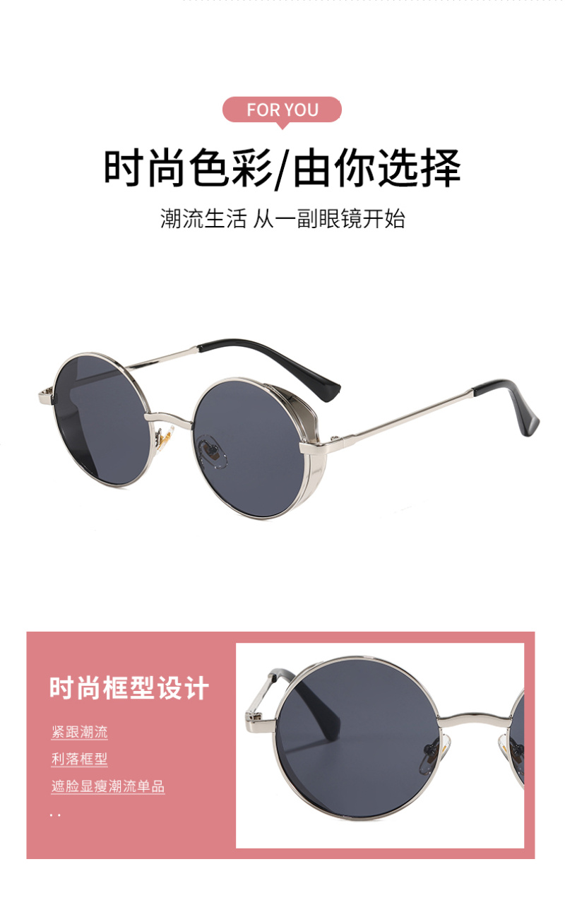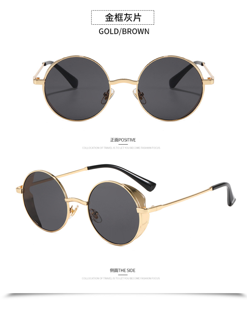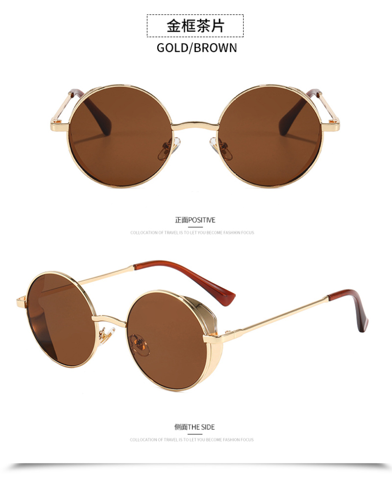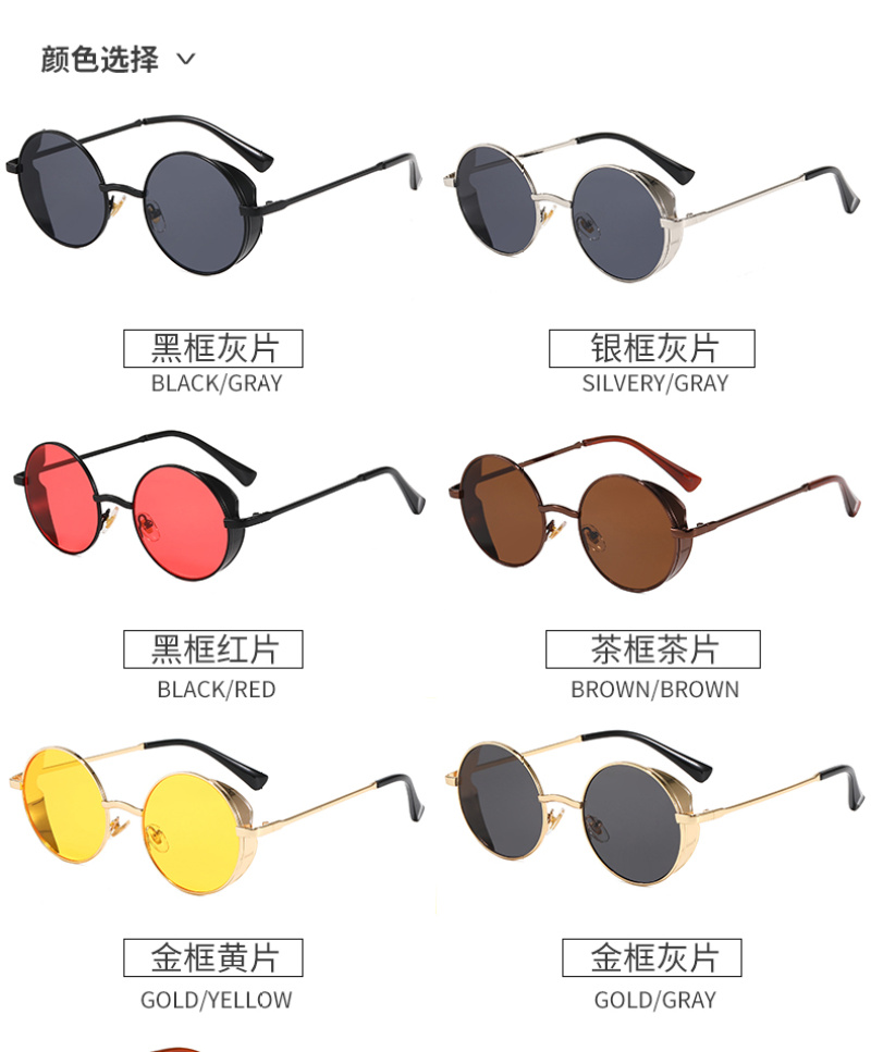 复古朋克风蒸汽太阳镜弹簧墨镜 欧美潮流圆形金属太阳镜眼镜