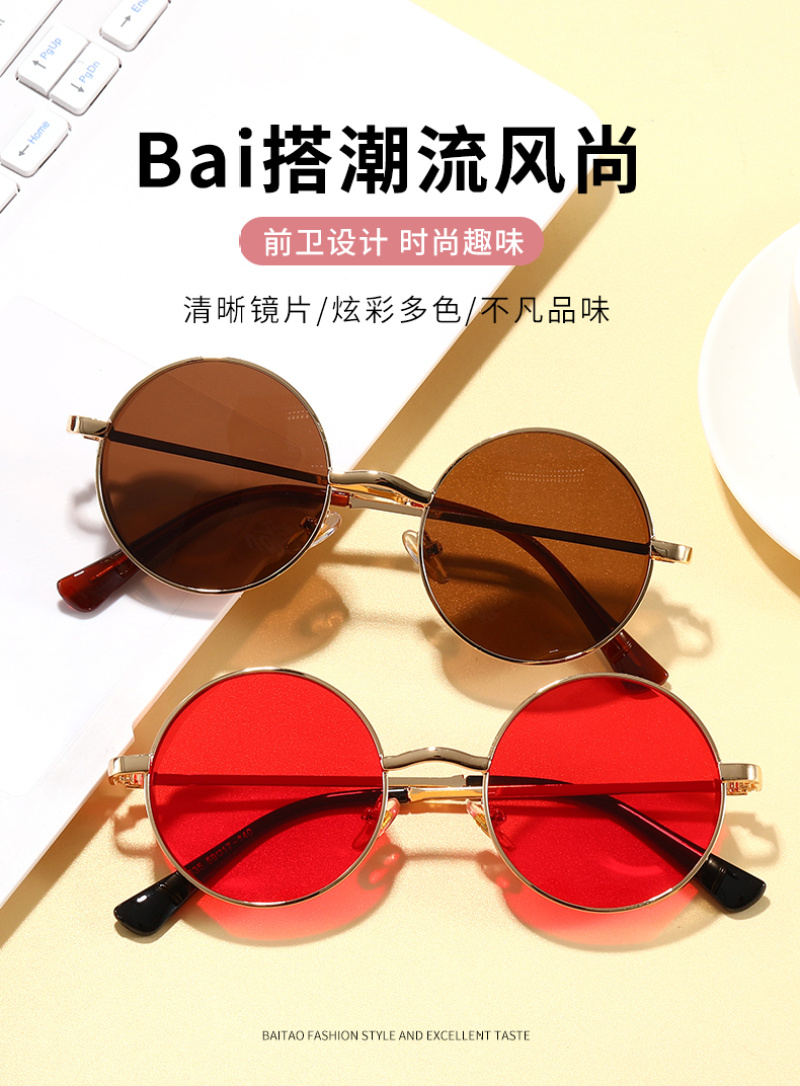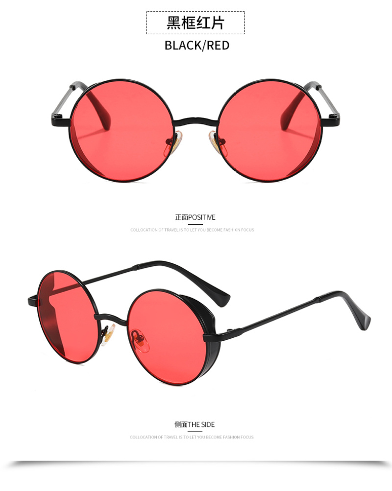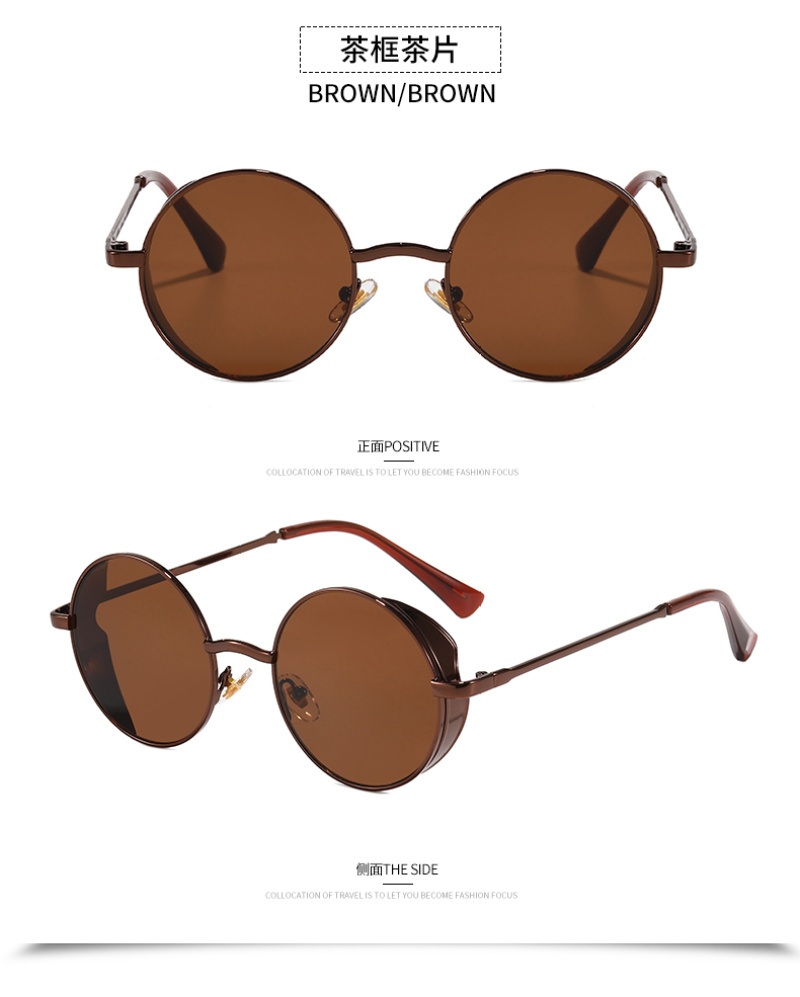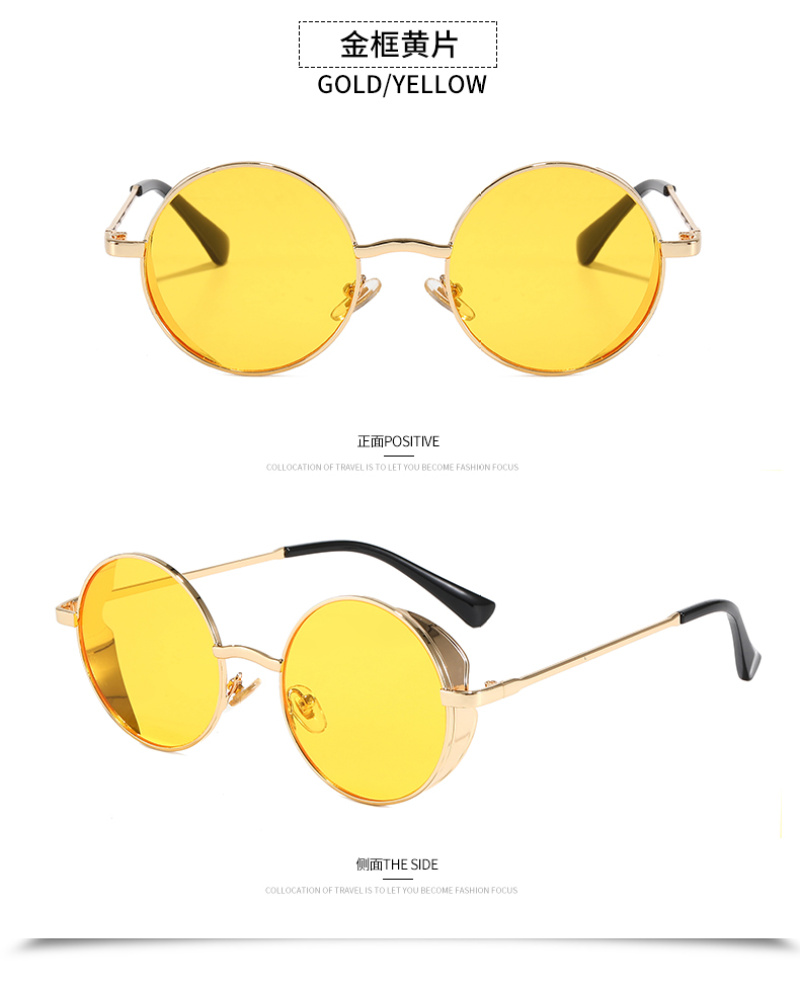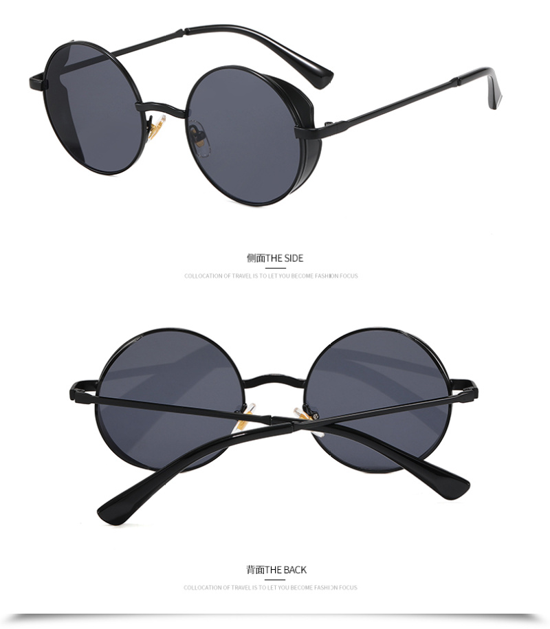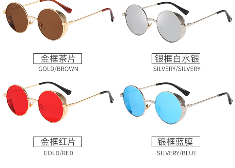 复古朋克风蒸汽太阳镜弹簧墨镜 欧美潮流圆形金属太阳镜眼镜