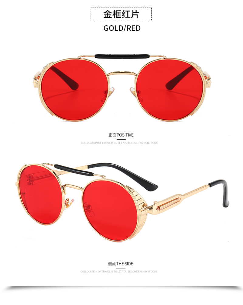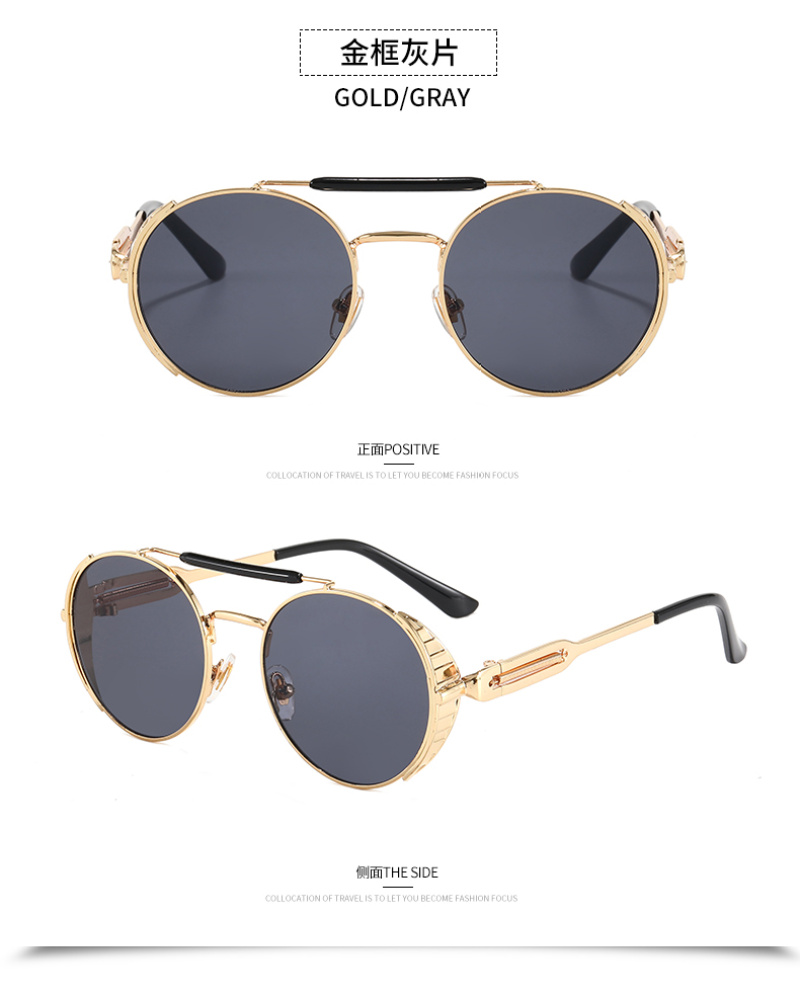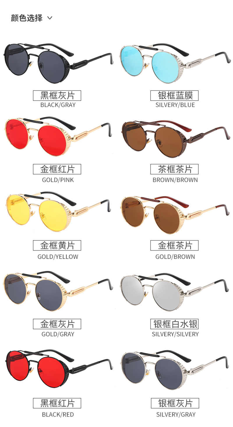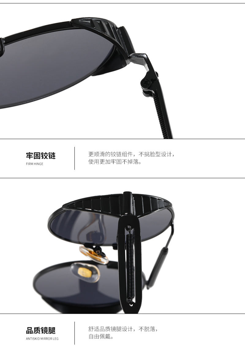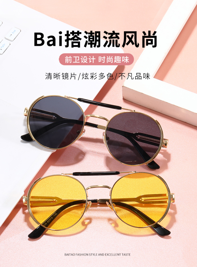 复古朋克风蒸汽太阳镜弹簧墨镜 欧美潮流圆形金属太阳镜眼镜