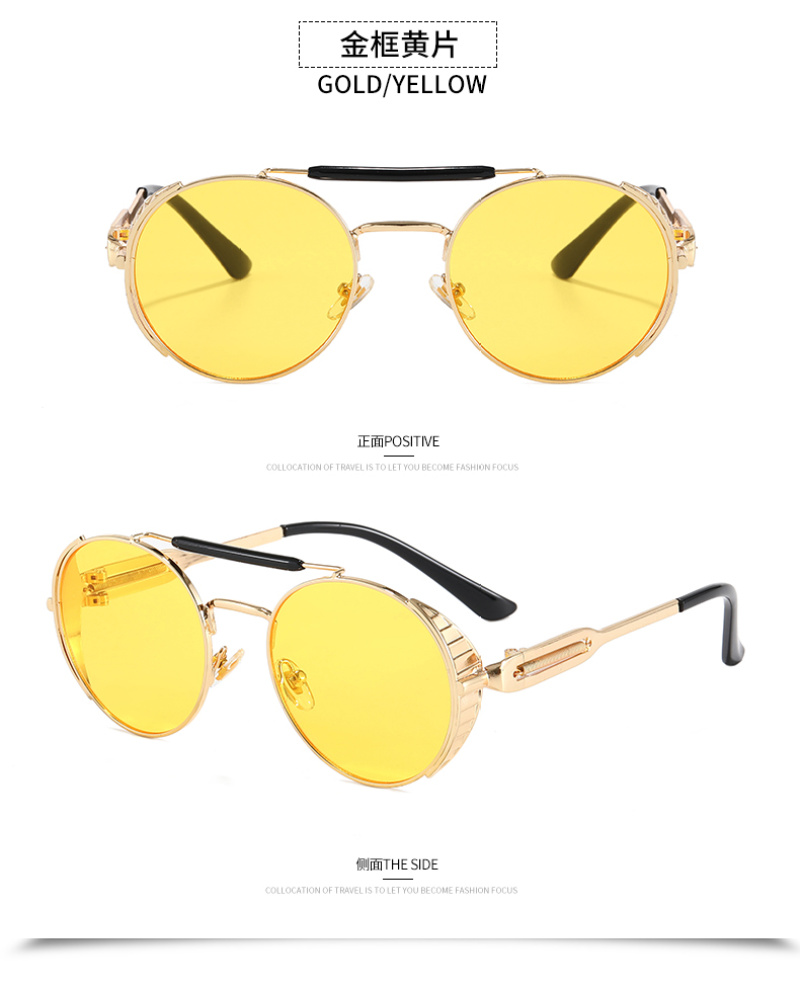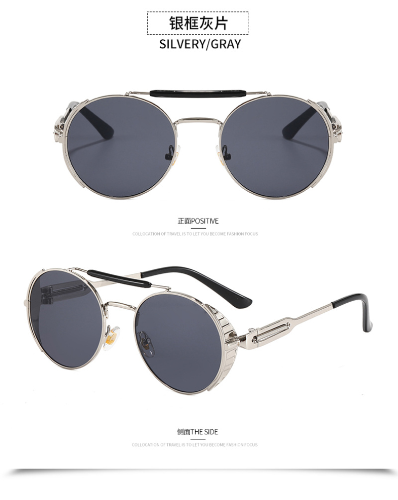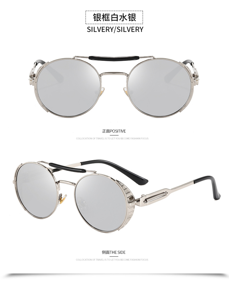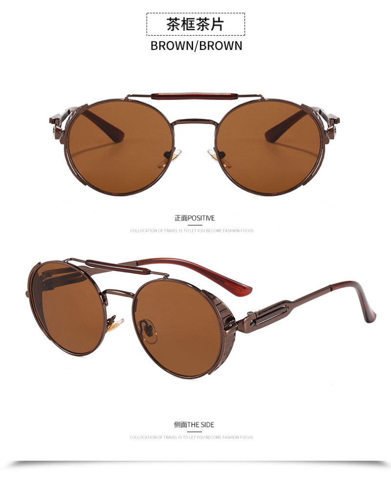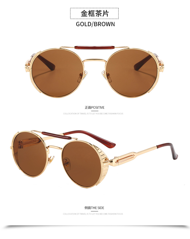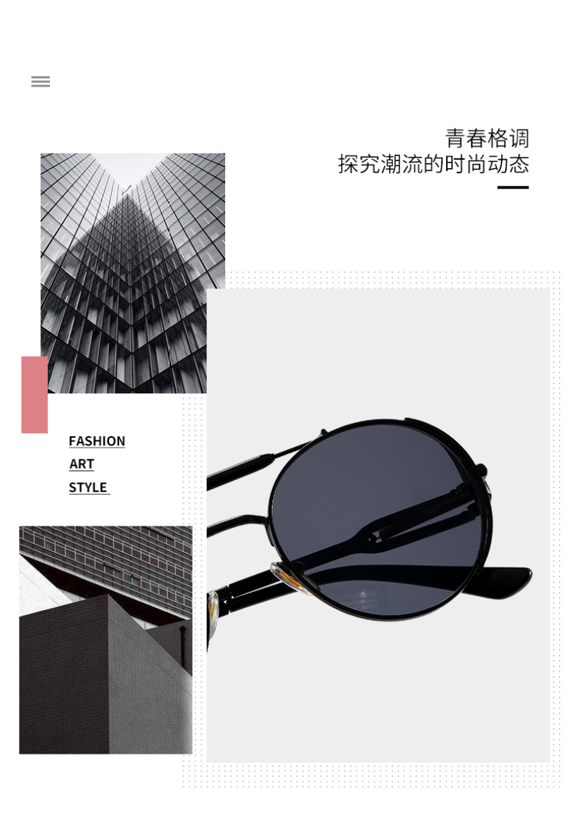 复古朋克风蒸汽太阳镜弹簧墨镜 欧美潮流圆形金属太阳镜眼镜