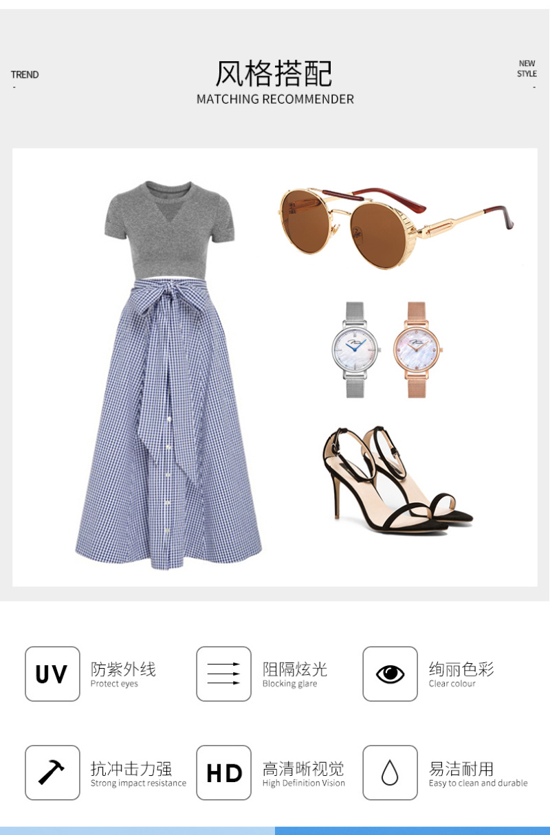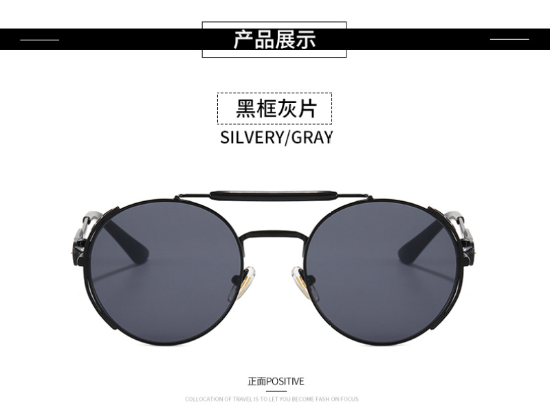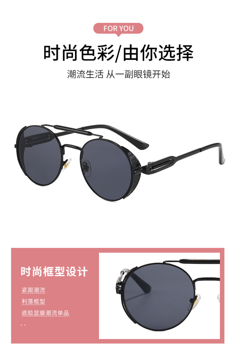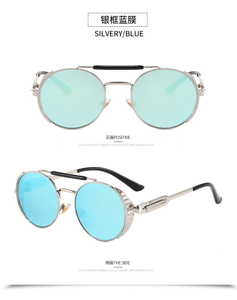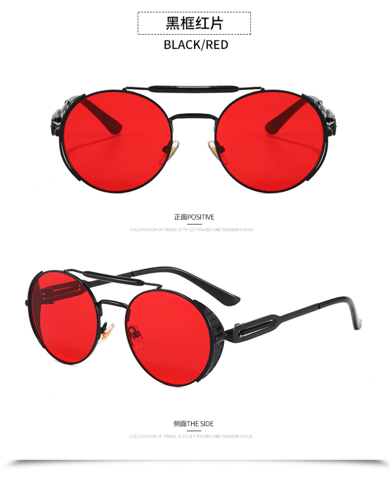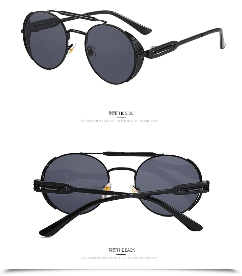 复古朋克风蒸汽太阳镜弹簧墨镜 欧美潮流圆形金属太阳镜眼镜