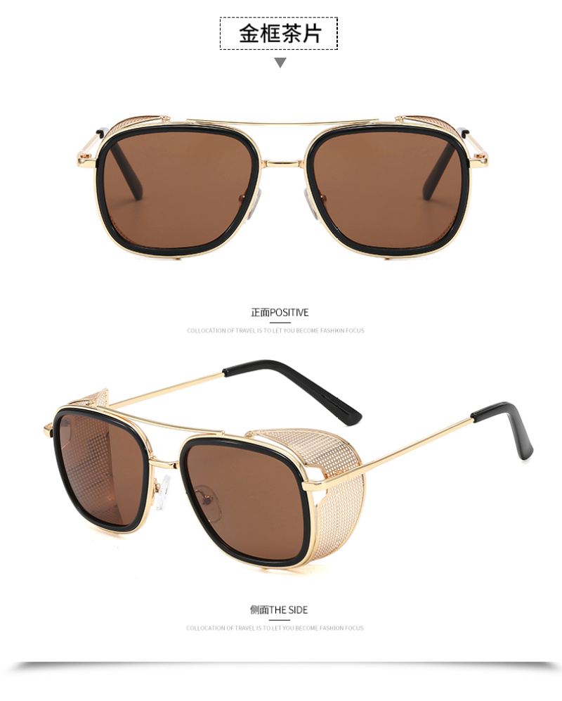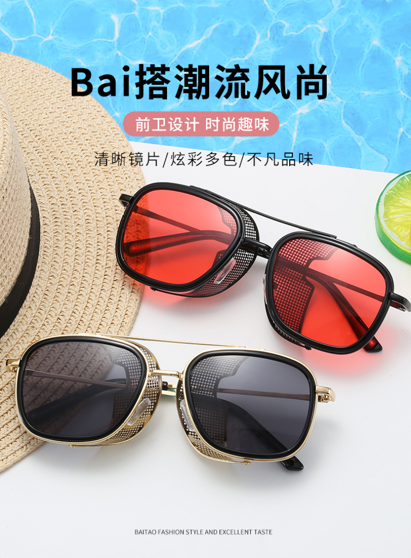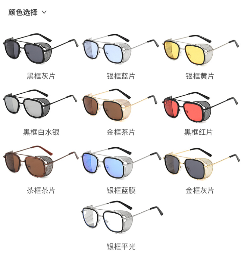 复古朋克风蒸汽太阳镜弹簧墨镜 欧美潮流圆形金属太阳镜眼镜