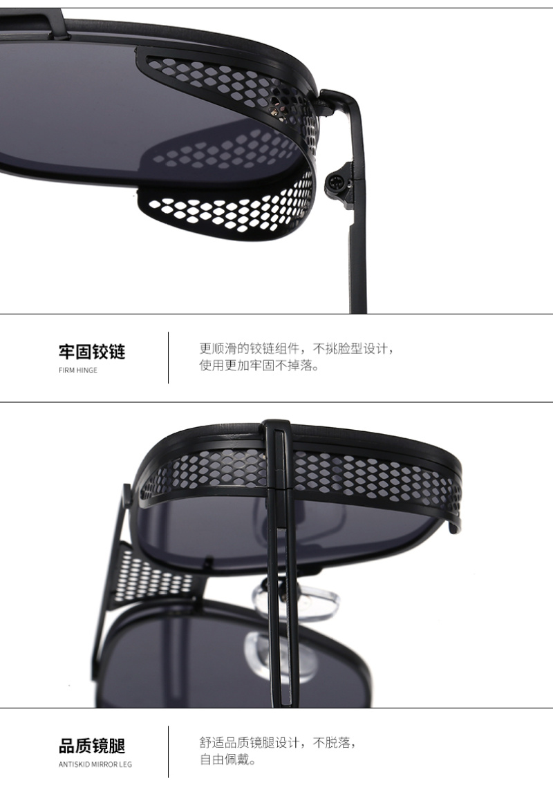复古朋克风蒸汽太阳镜弹簧墨镜 欧美潮流圆形金属太阳镜眼镜