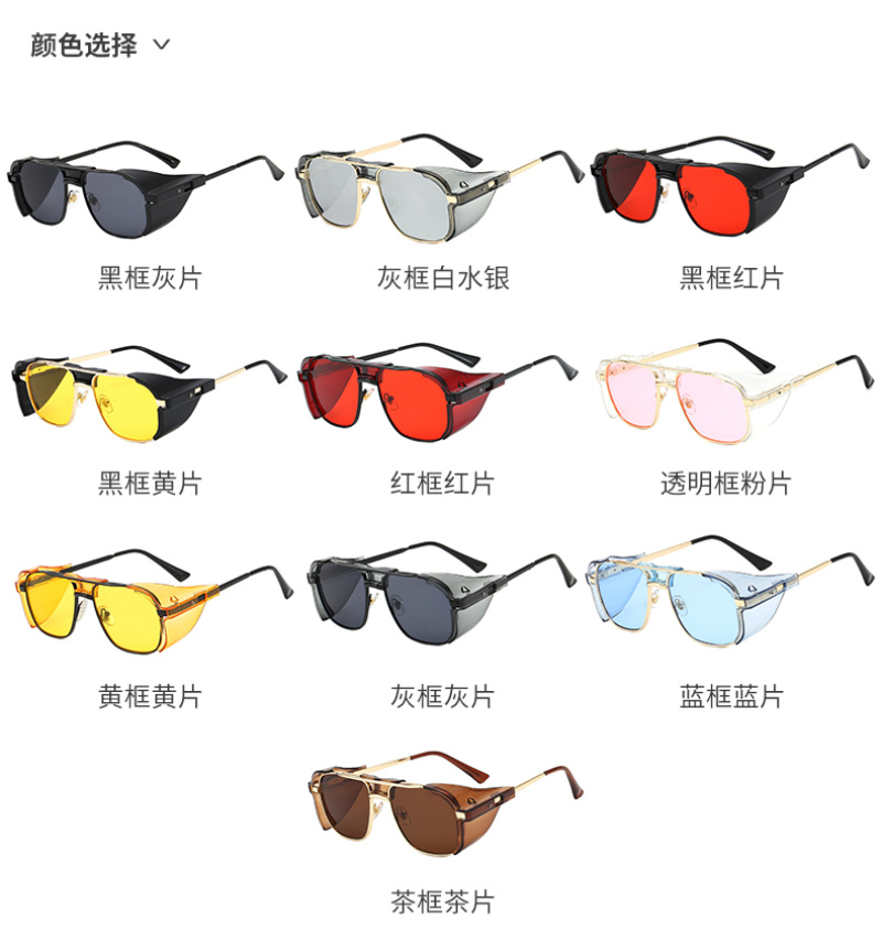 复古朋克风蒸汽太阳镜弹簧墨镜 欧美潮流圆形金属太阳镜眼镜