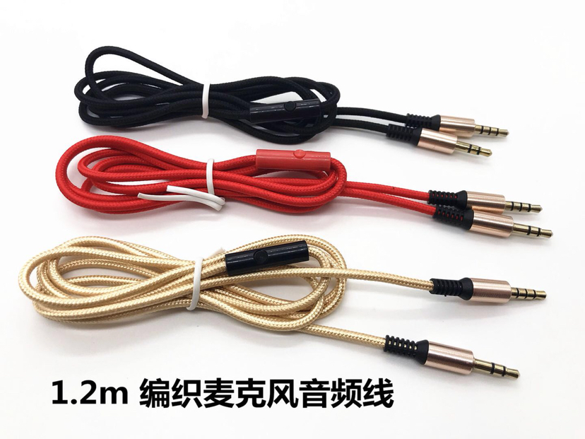 带麦公对公音频扁线 3.5通用手机头戴耳机AUX车载带麦线控