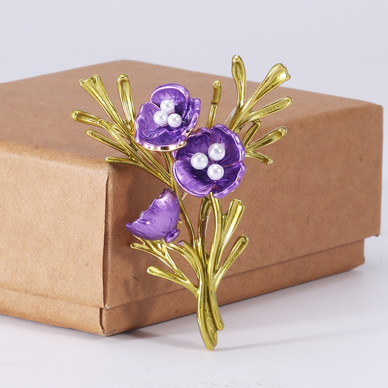 新品复古创意手工画油罂粟花胸针 简约女款时尚防走光固定别针