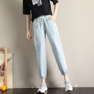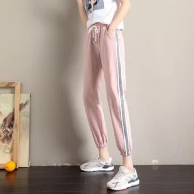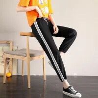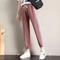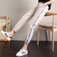 运动裤女夏学生韩版嘻哈休闲九分裤薄款高腰宽松时尚条纹哈伦裤