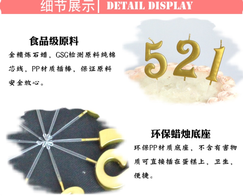 土豪金数字吸卡蜡烛 浪漫生日周岁过寿独立包装 装饰工艺 蜡烛