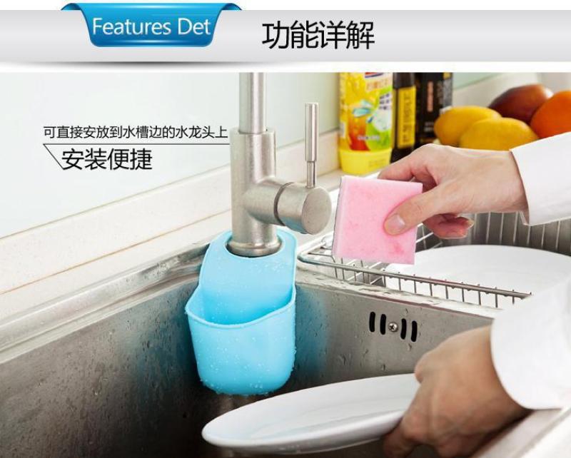 小工具 厨房沥水挂篮 PVC 水龙头挂袋 水槽收纳沥水袋海绵置物架