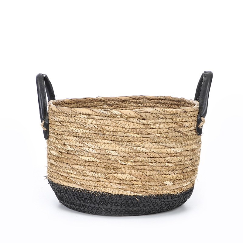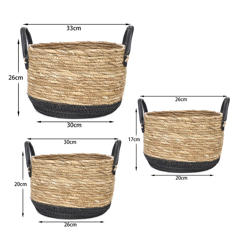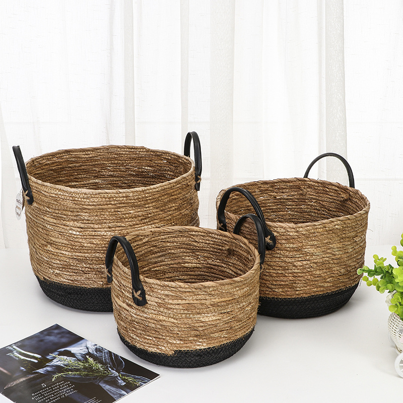 手工编织草编收纳筐带提手脏衣篮玩具零食整理民宿装饰田园花盆