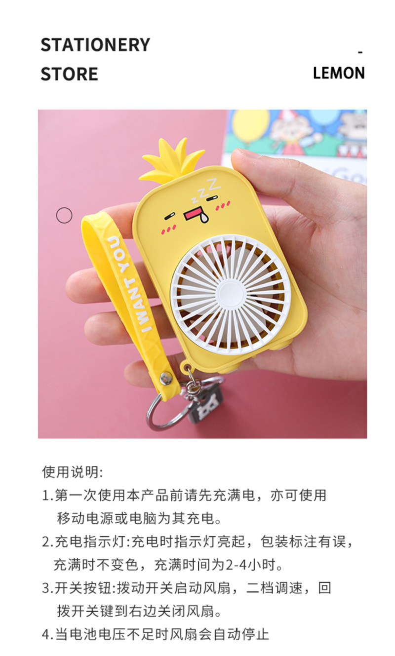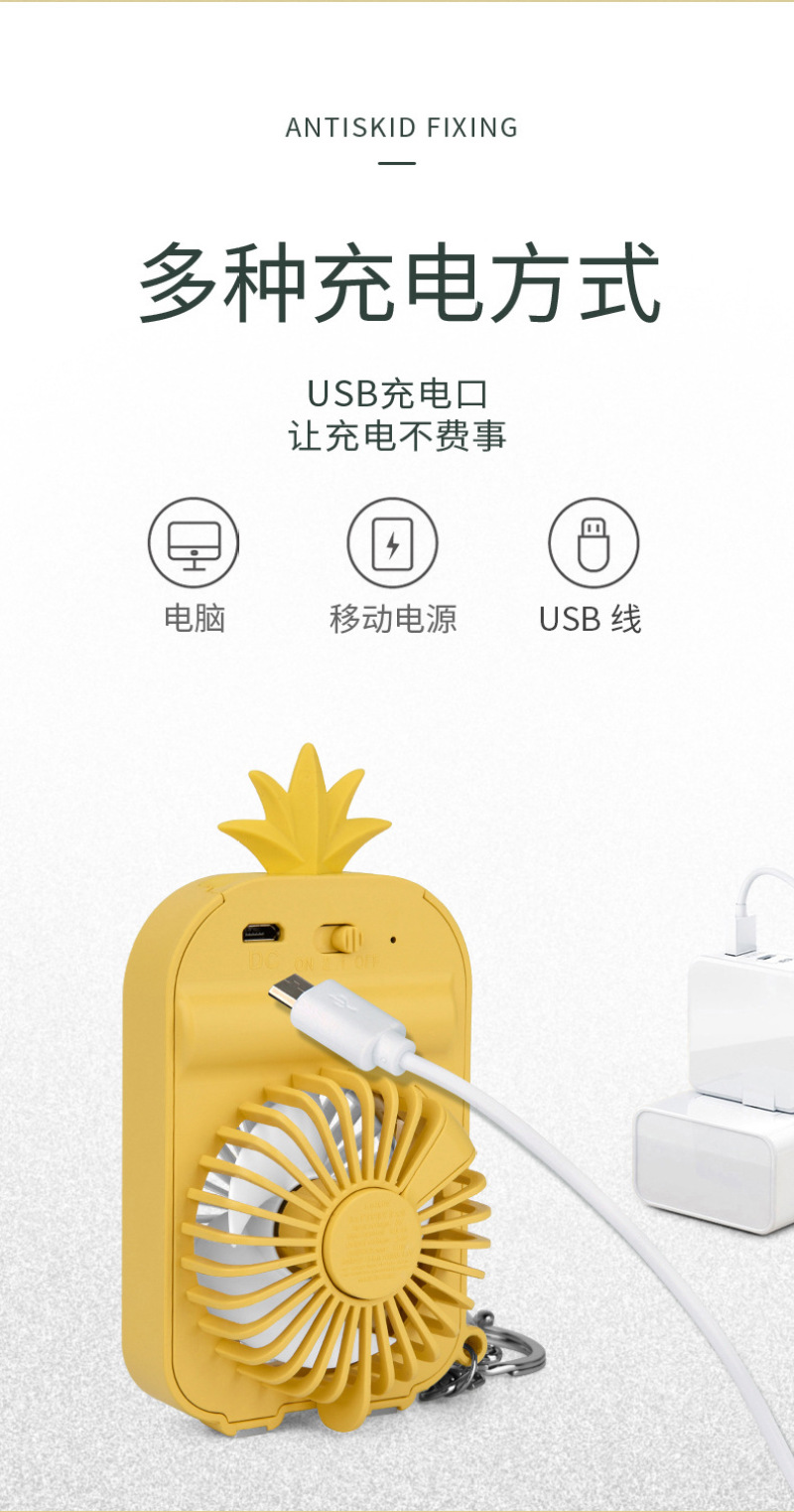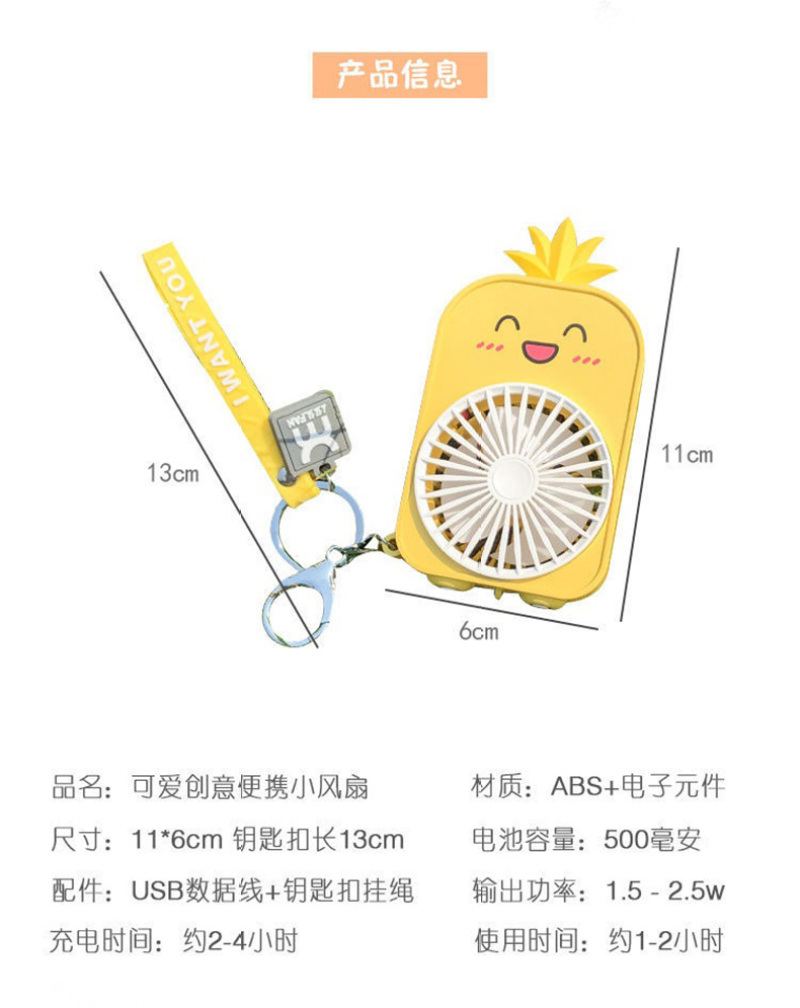 手持充电小风扇带USB数据线带钥匙扣可做书包关键 装饰