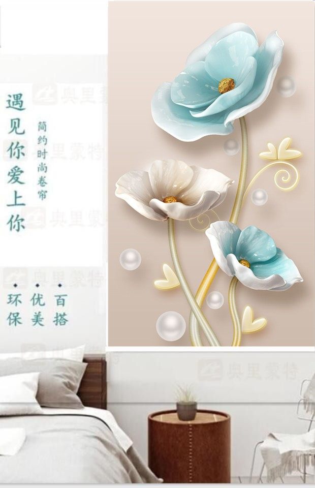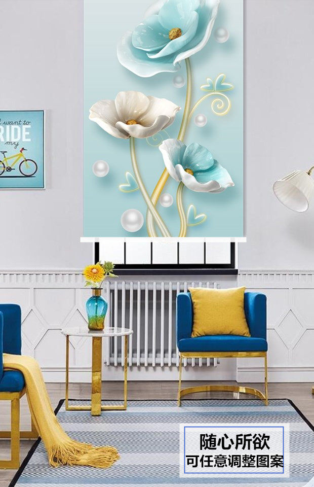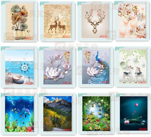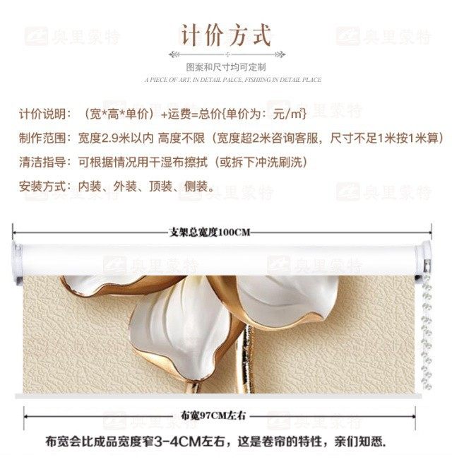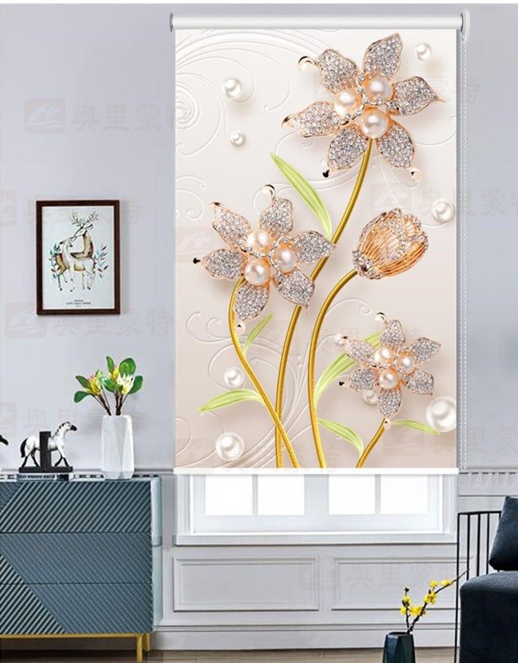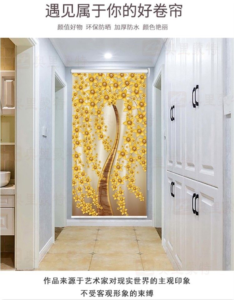3D画卫生间窗帘防水卷帘升降拉珠式遮光隔热卷式拉帘客厅隔断门帘