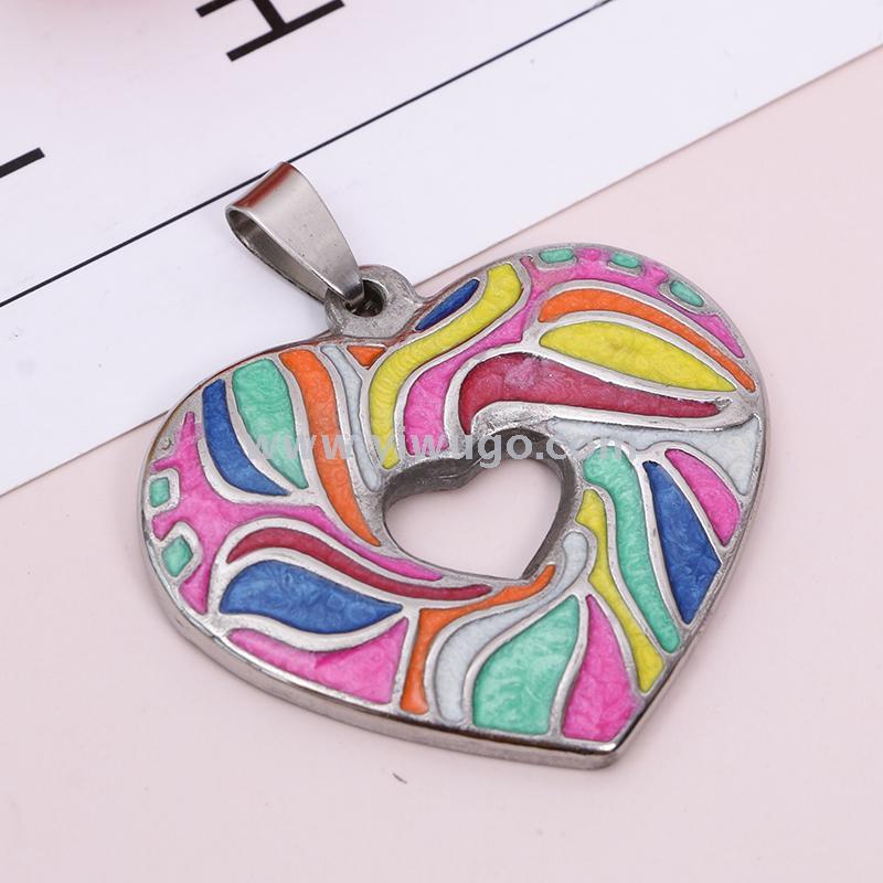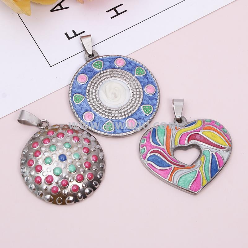不锈钢圆形心形吊坠手链项链彩色滴胶珠子潮流时尚首饰厂家直销