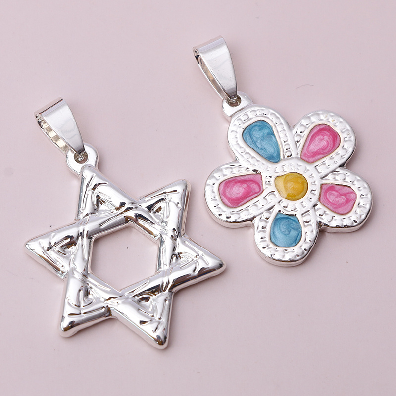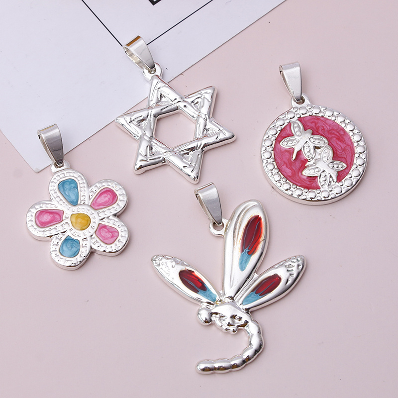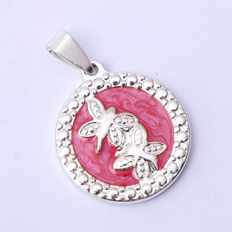不锈钢圆形五角星花形蜻蜓滴油抛光手链项链吊坠时尚潮流厂家直销