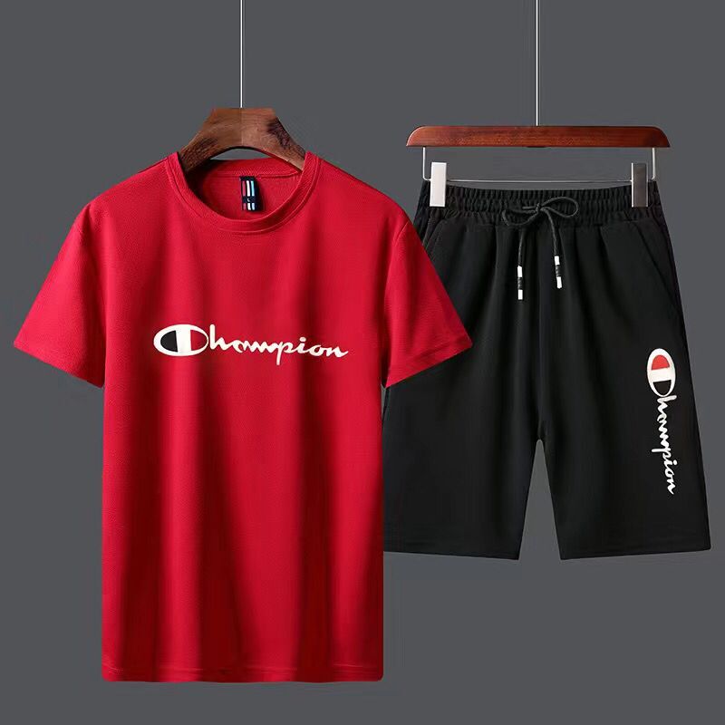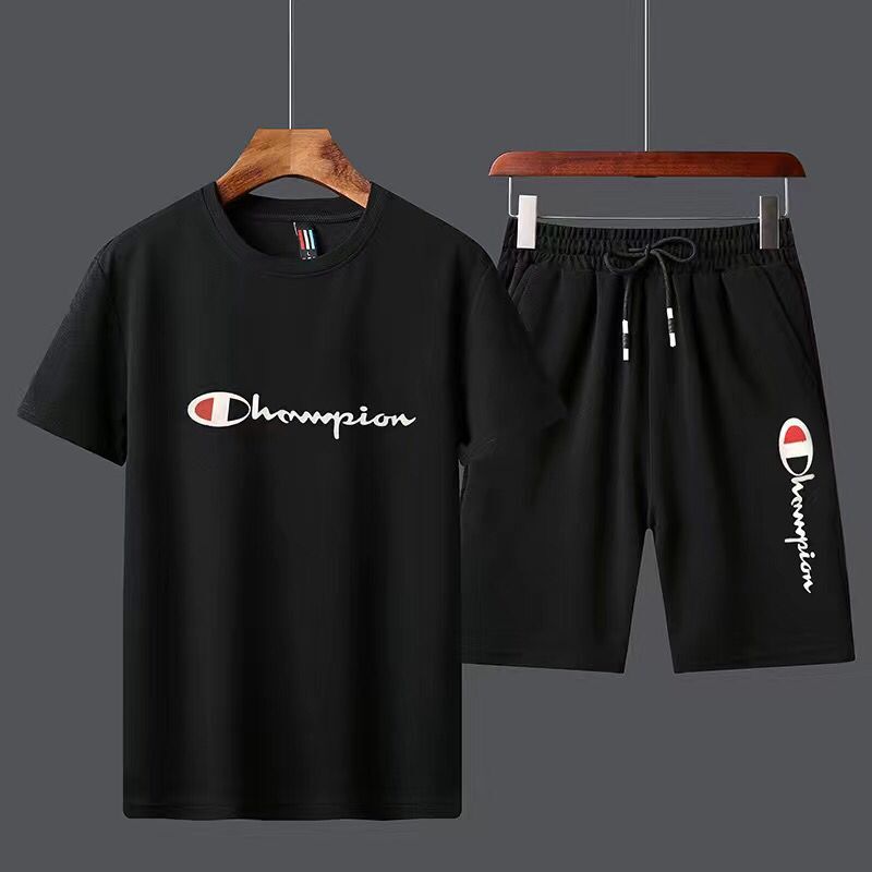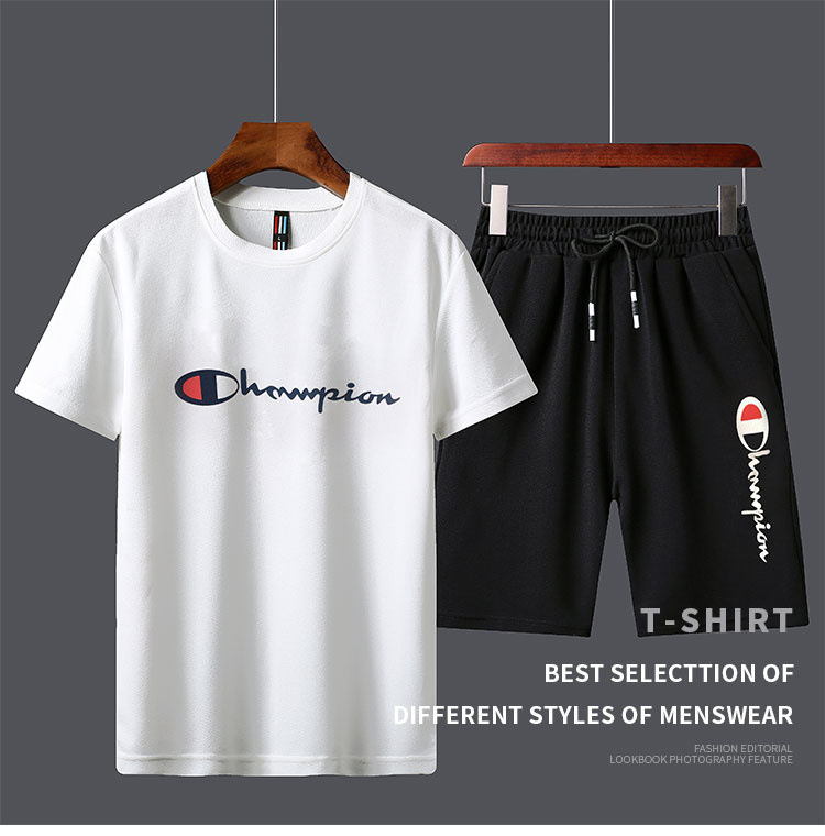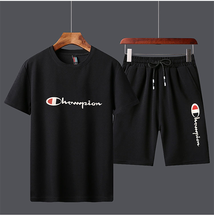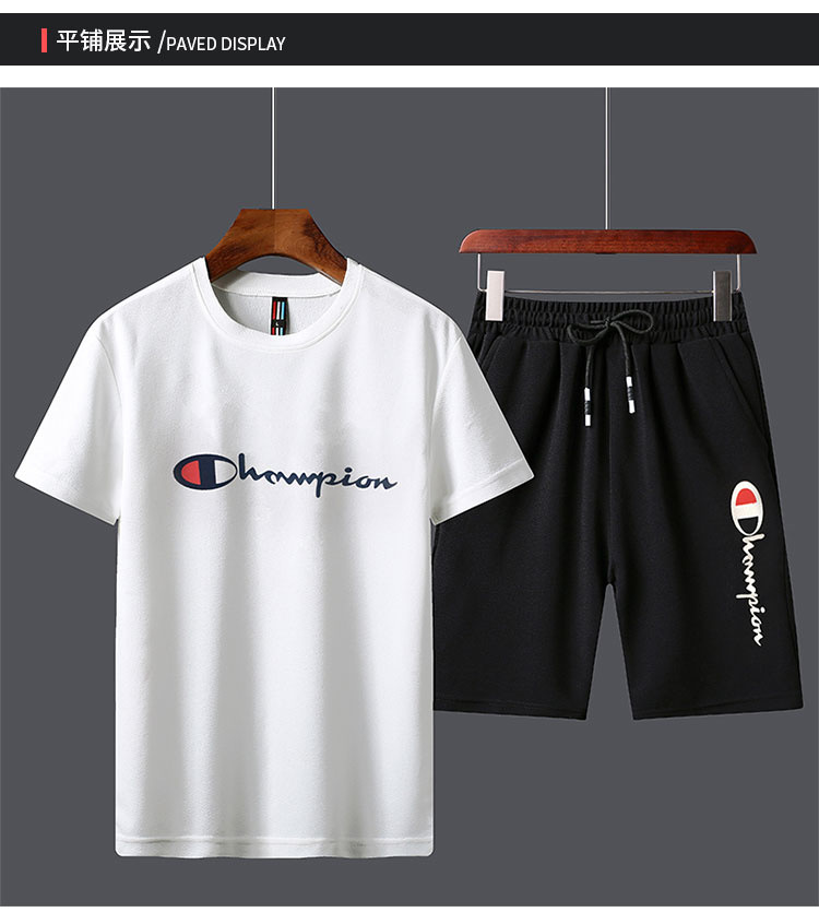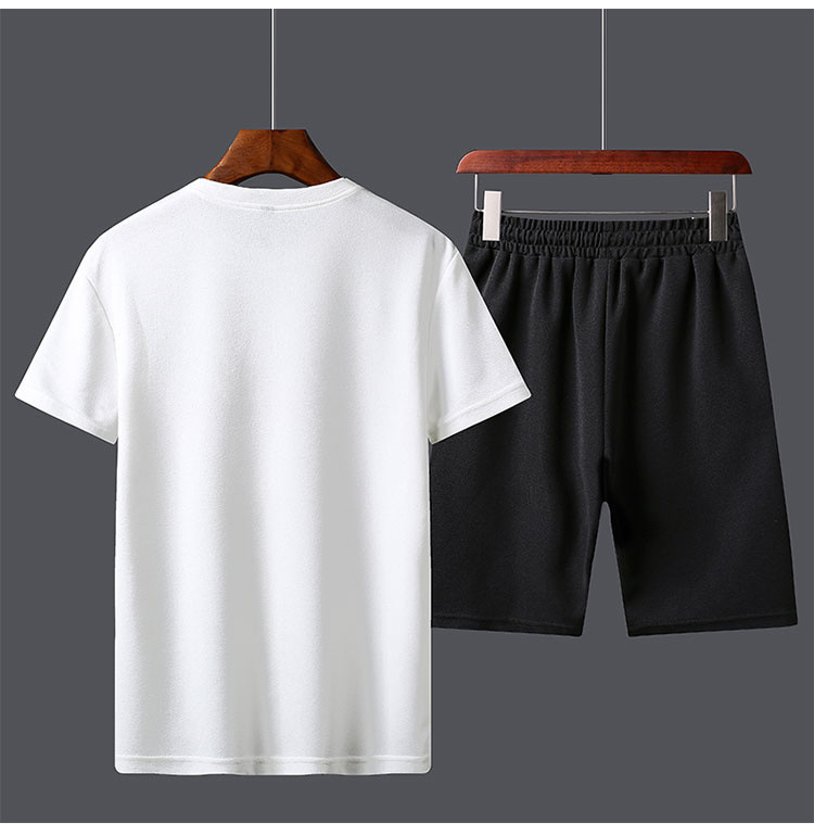 工厂一件代发2020夏季薄款男士圆领印花字母大码休闲潮流短袖套装