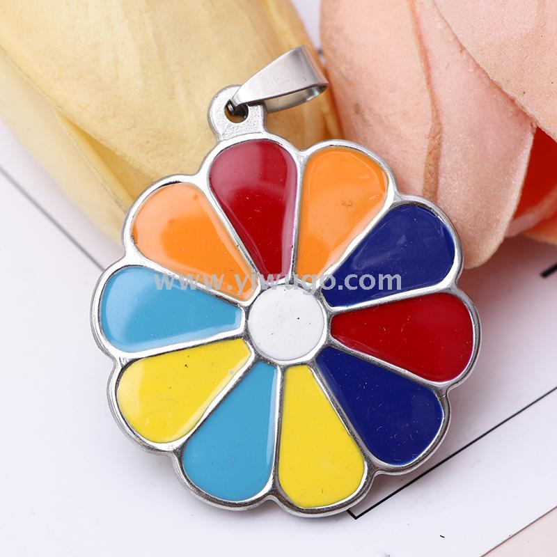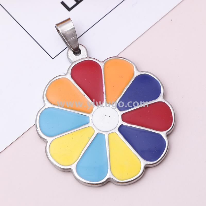 不锈钢彩色太阳花滴油吊坠村上隆彩色花朵嘻哈吊坠潮牌向日葵吊坠